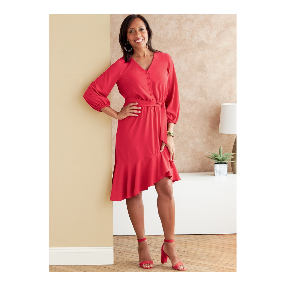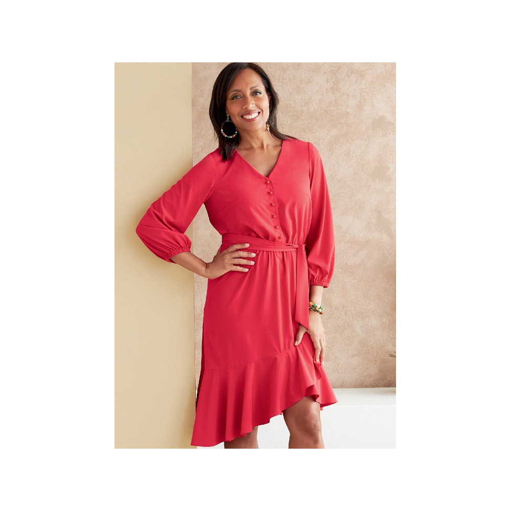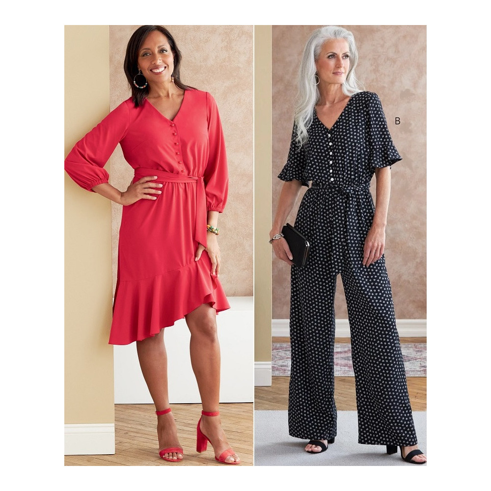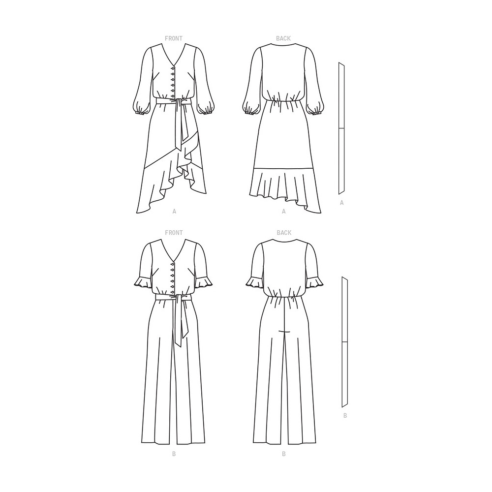 Střih Butterick na šaty s knoflíčky a asymetrickým volánovým lemem a overal