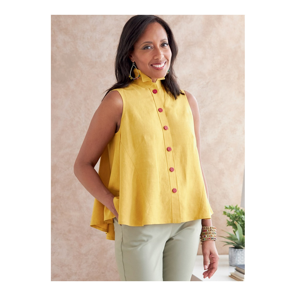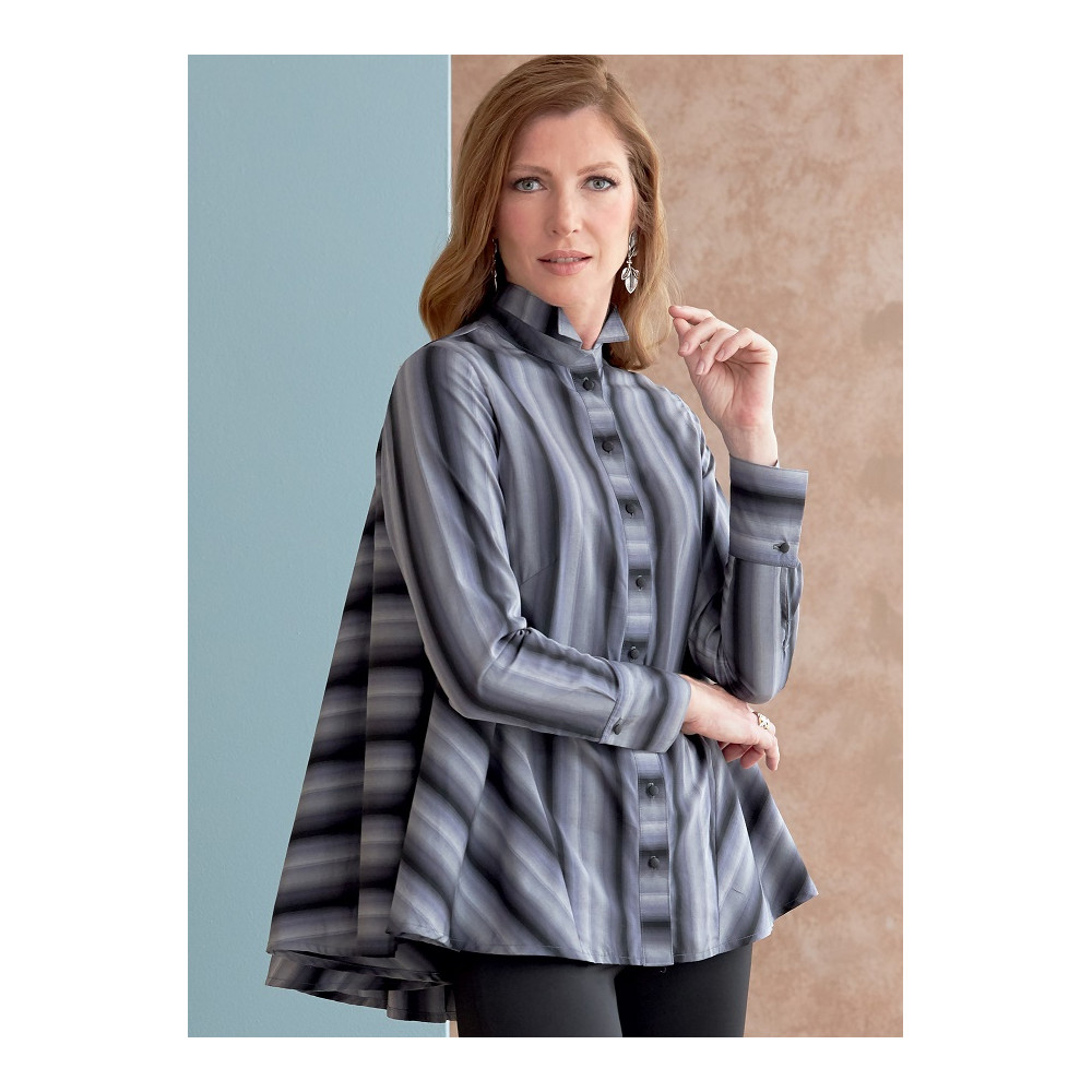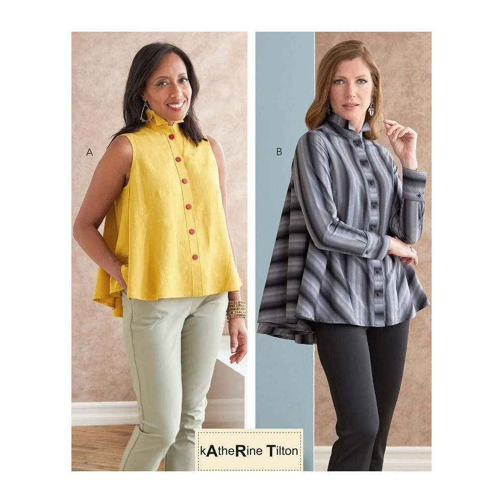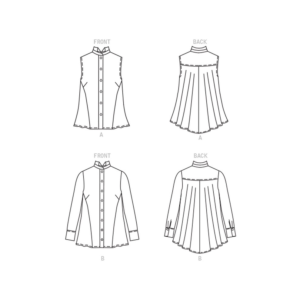 Střih Butterick na širokou košili se stojáčkem, sklady na zádech a variantami rukávů