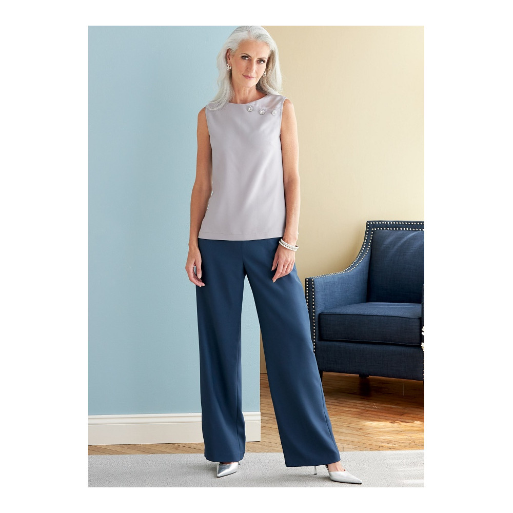 Střih Butterick na šaty s čtvercovým výstřihem, otevřené sako, top a kalhoty s puky