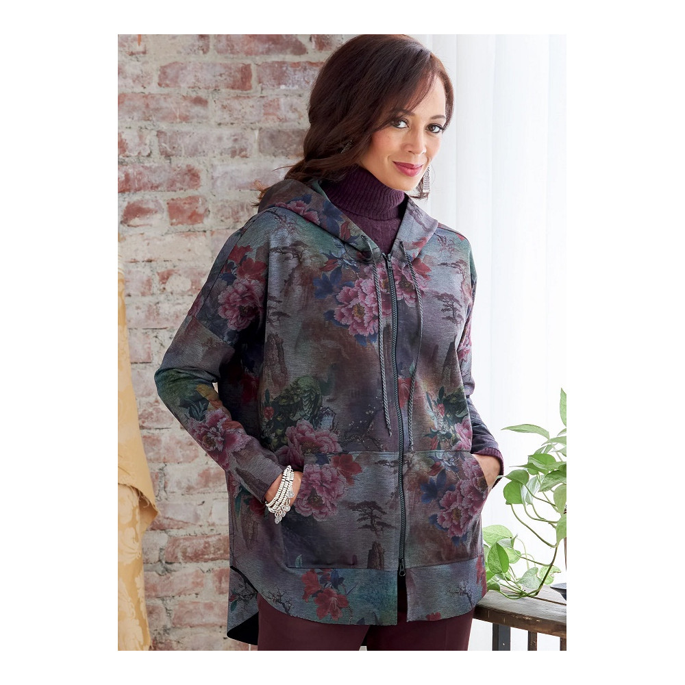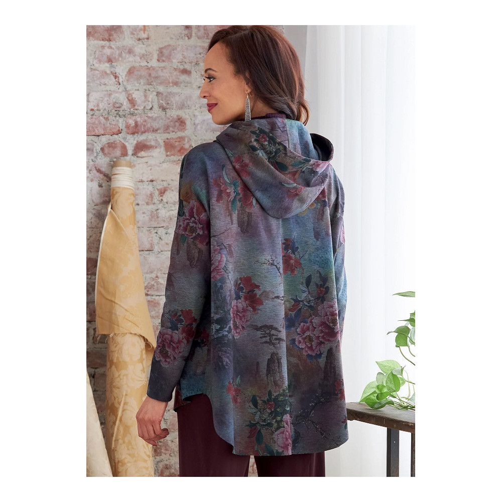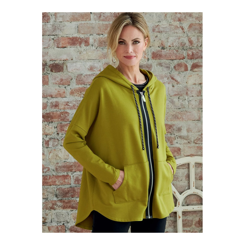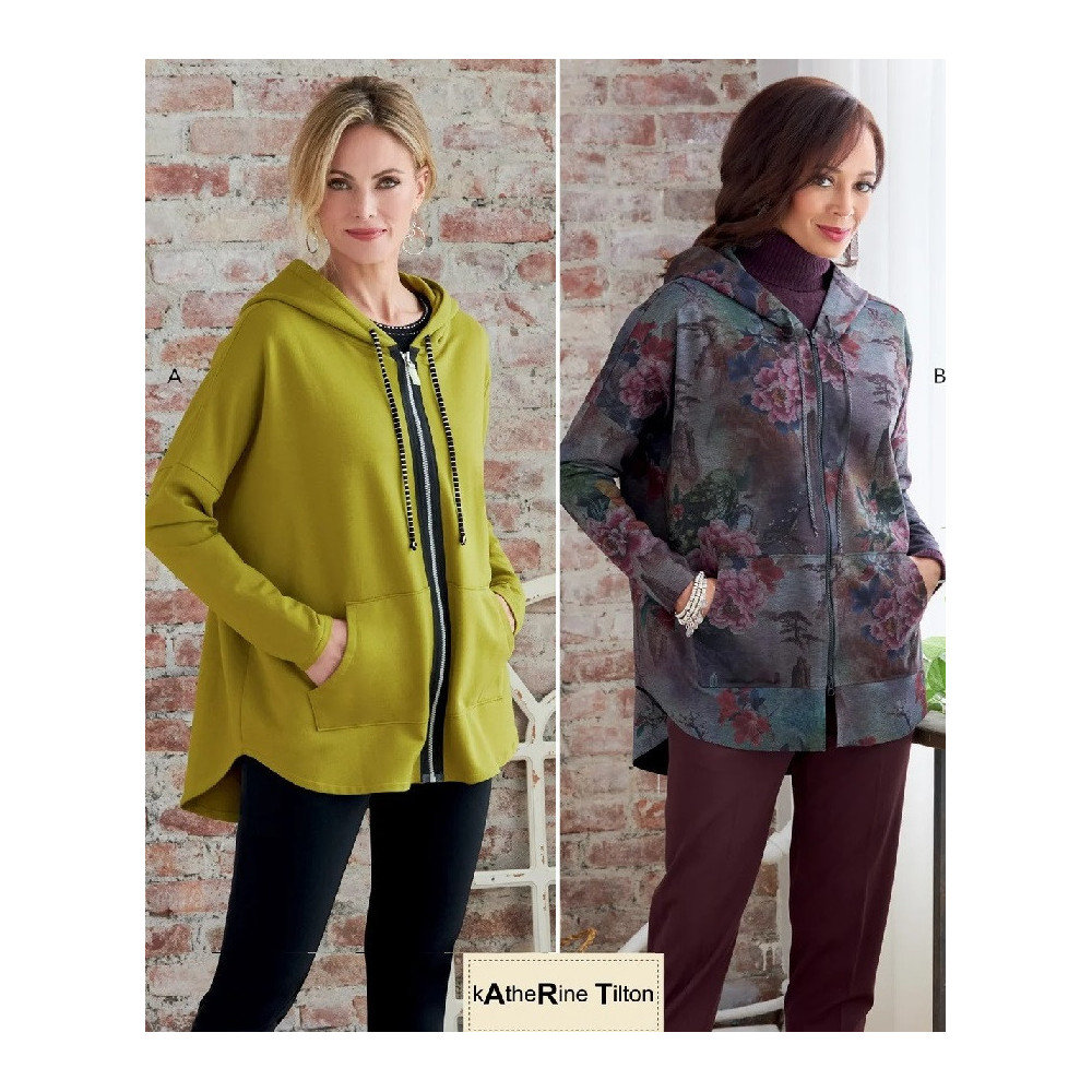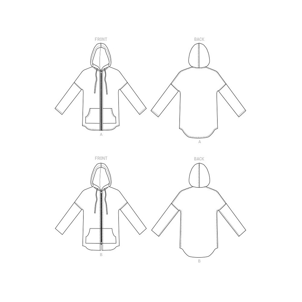 Střih Butterick na volnou mikinu se zapínáním na zip s kapucí a předními kapsami