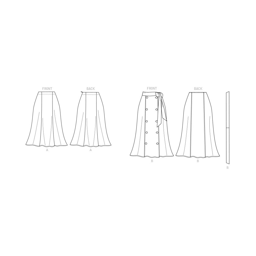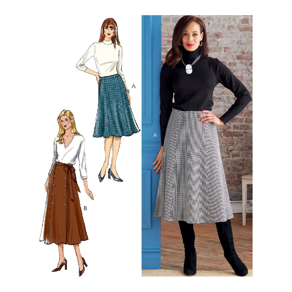Střih Butterick na sukni s princesovými švy a zavinovací sukni s knoflíky a páskem