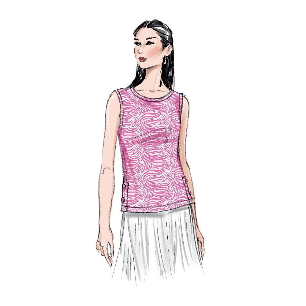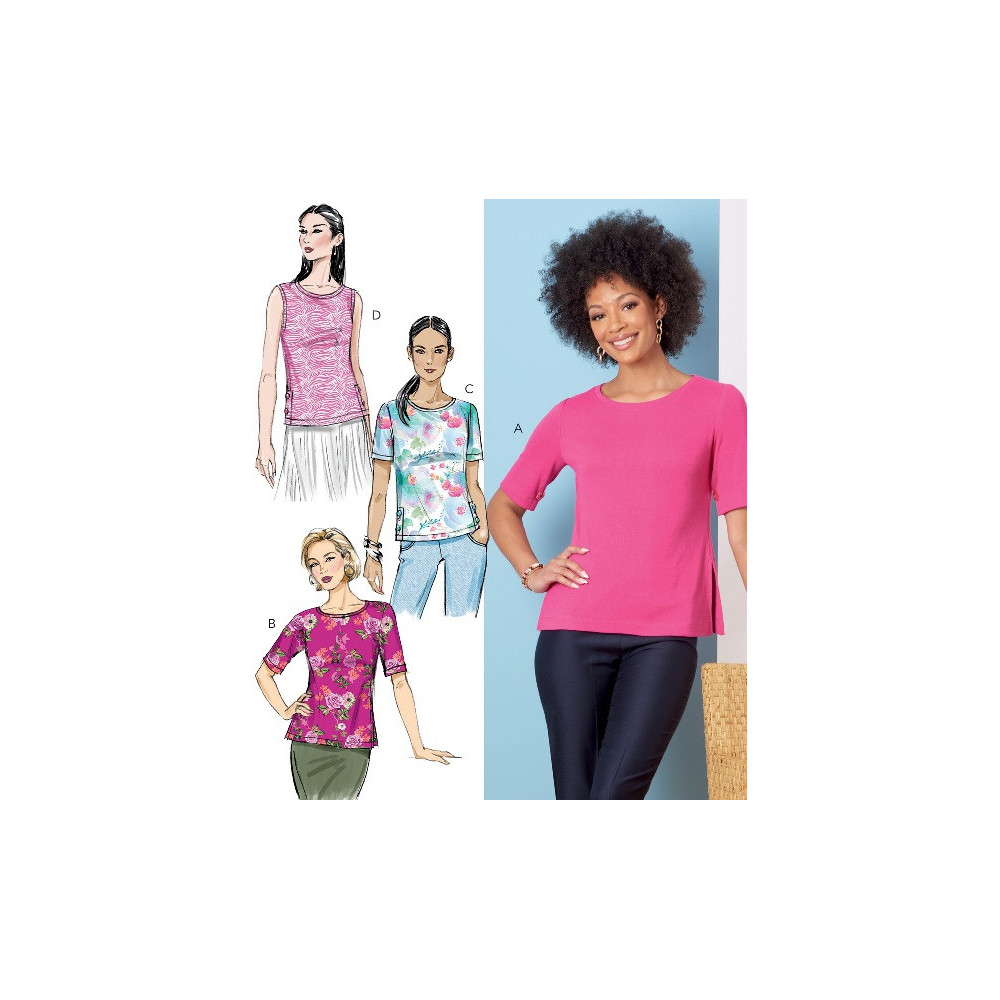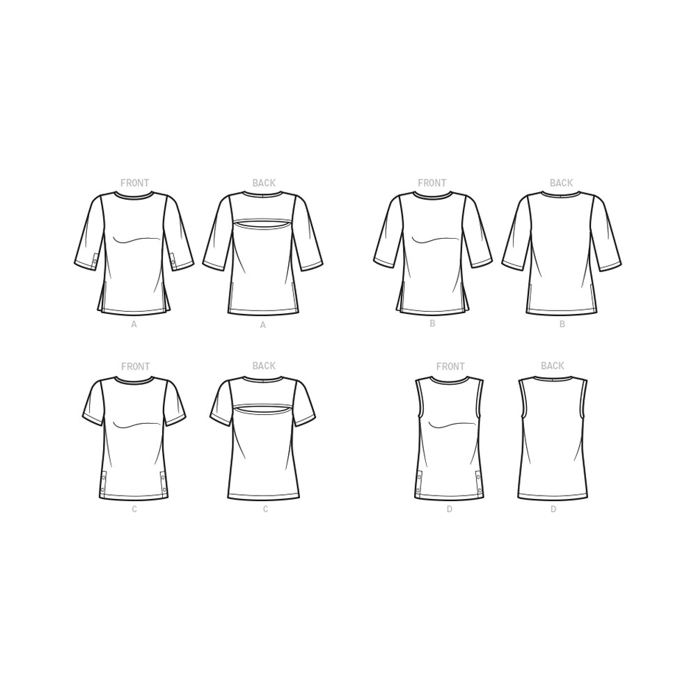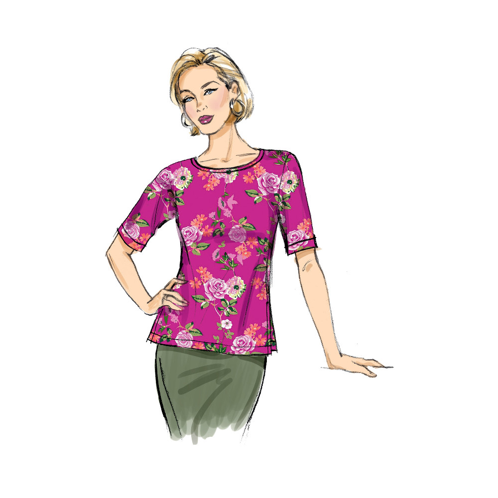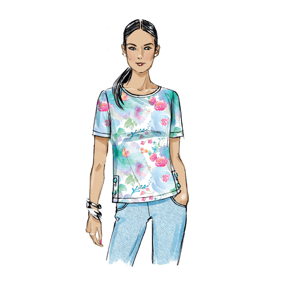 Střih Butterick na tričko s kulatým výstřihem a variantami rukávů a průstřihem na zádech