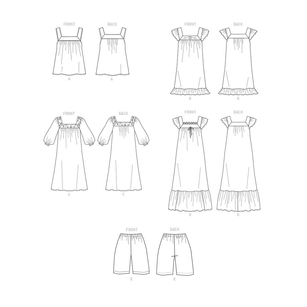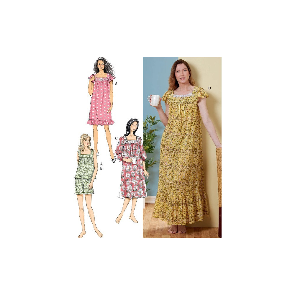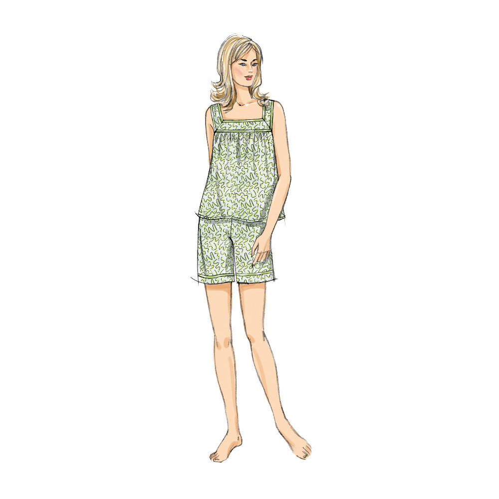 Střih Butterick na noční košili se čtvercovým výstřihem (3 varianty), top a šortky