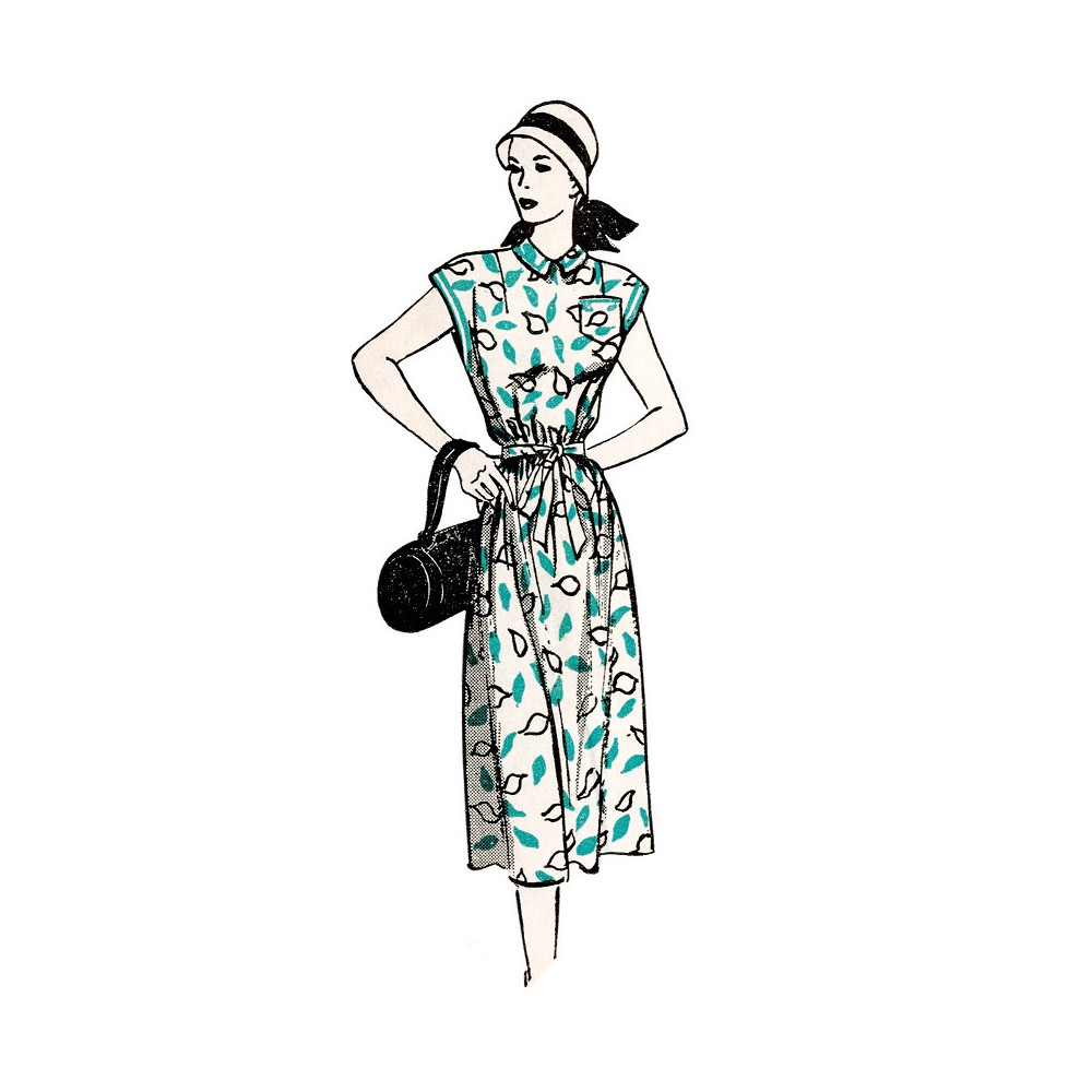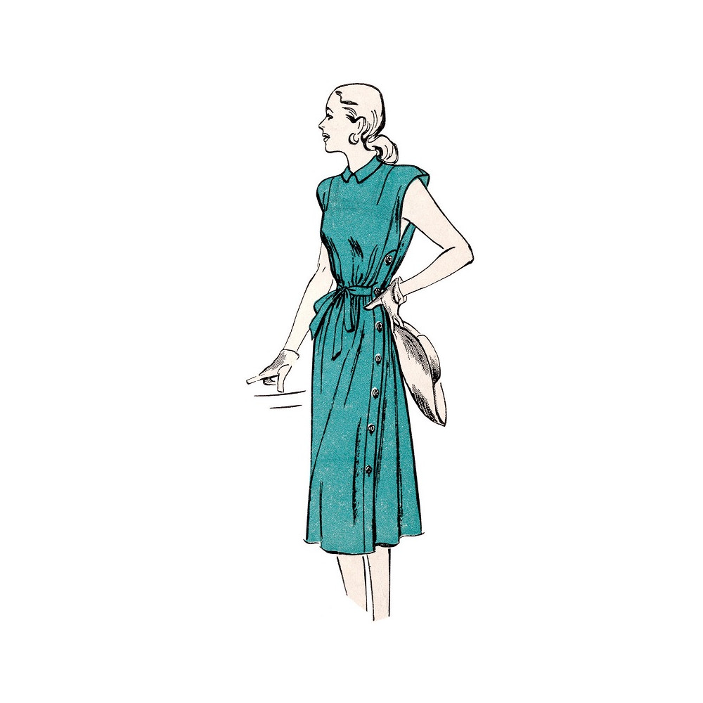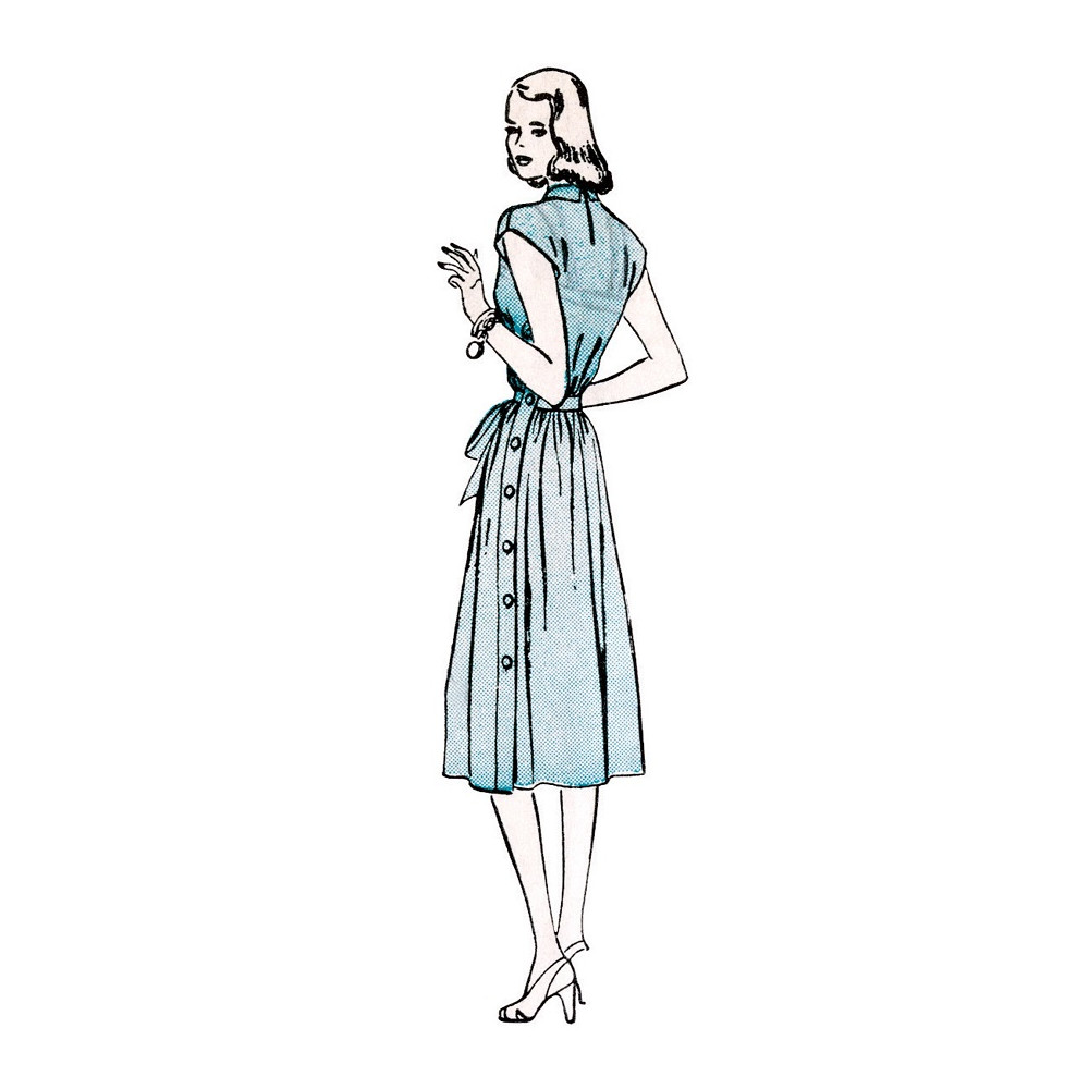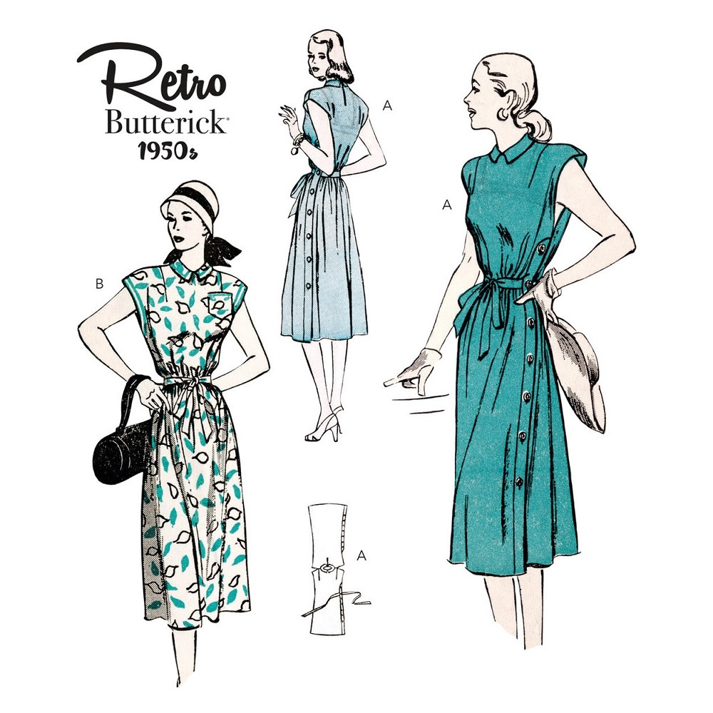 Střih Butterick na Vintage košilové šaty z 50. let s propínáním na levé straně a páskem