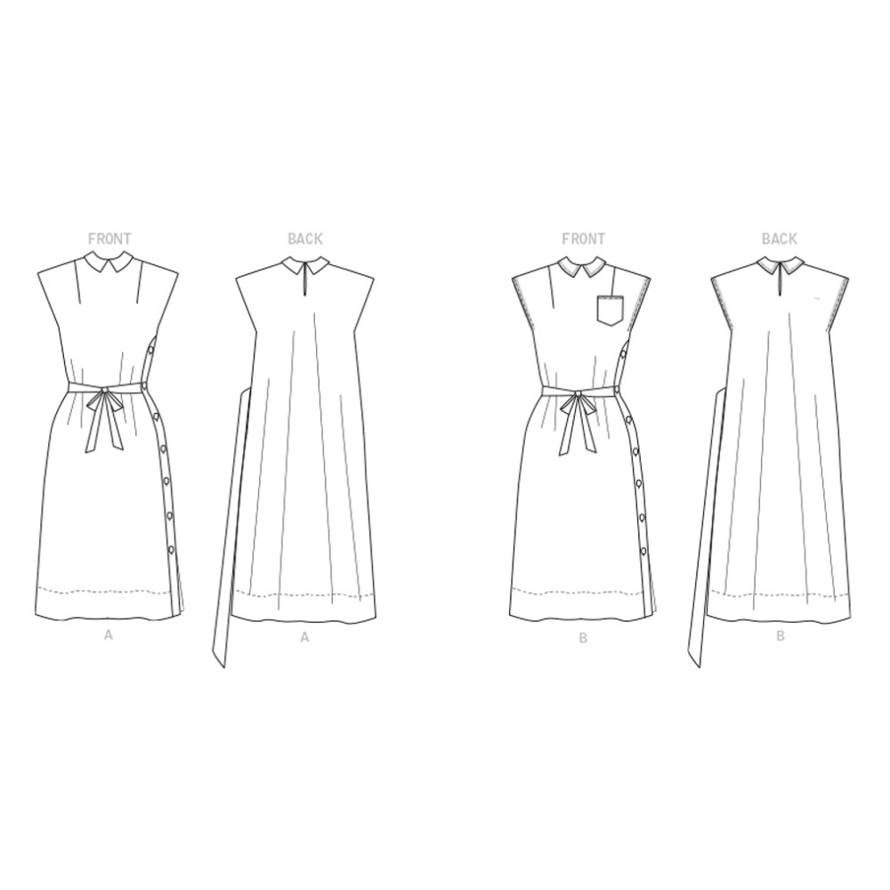Střih Butterick na šaty bez rukávů se zavinováním, princesovými švy, řasením a drapé