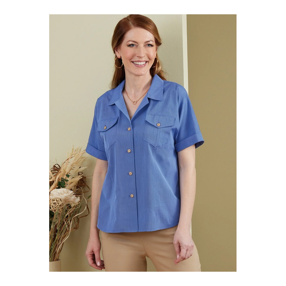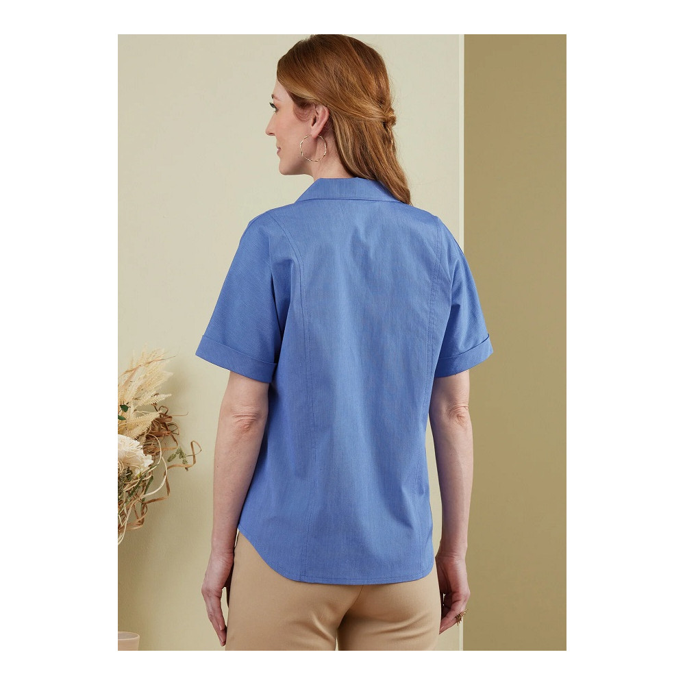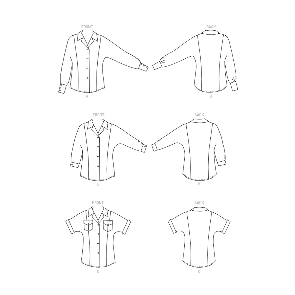 Střih Butterick na košili s dlouhým rukávem, náprsními kapsami a zaoblenou záložkou