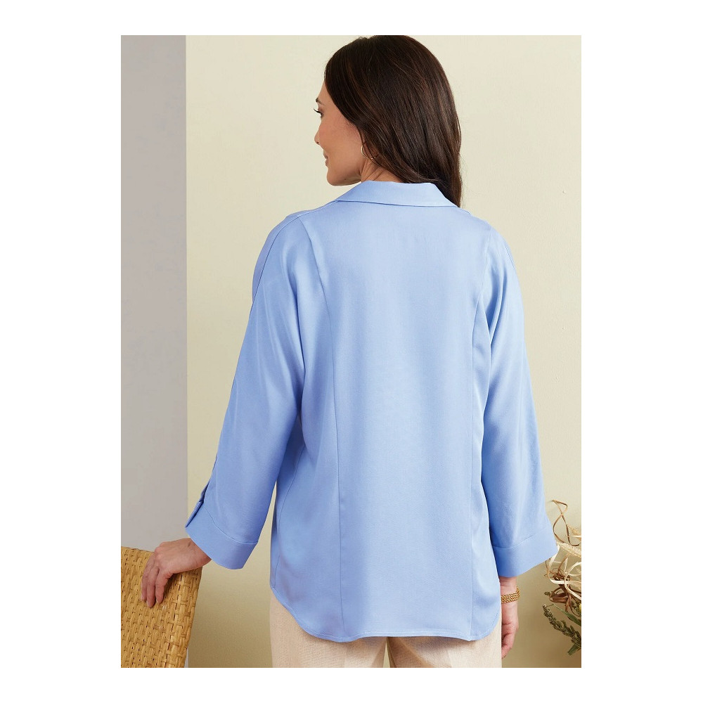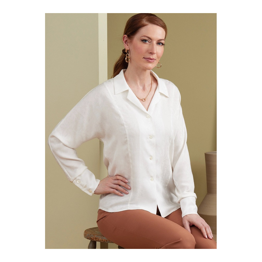 Střih Burda na propínací halenku / košili s dlouhým rukávem a výstřihem do V.