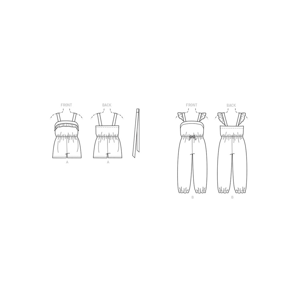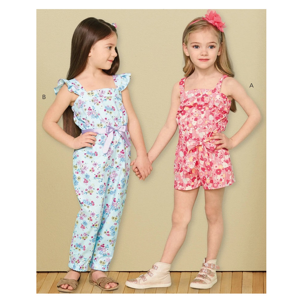 Dětský střih Butterick na overal na ramínka s gumou v pase a variantami délek nohavic