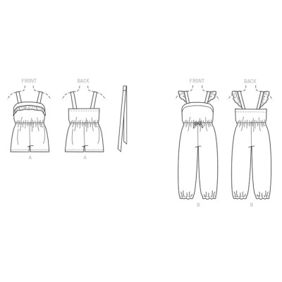 Dětský střih Butterick na overal na ramínka s gumou v pase a variantami délek nohavic