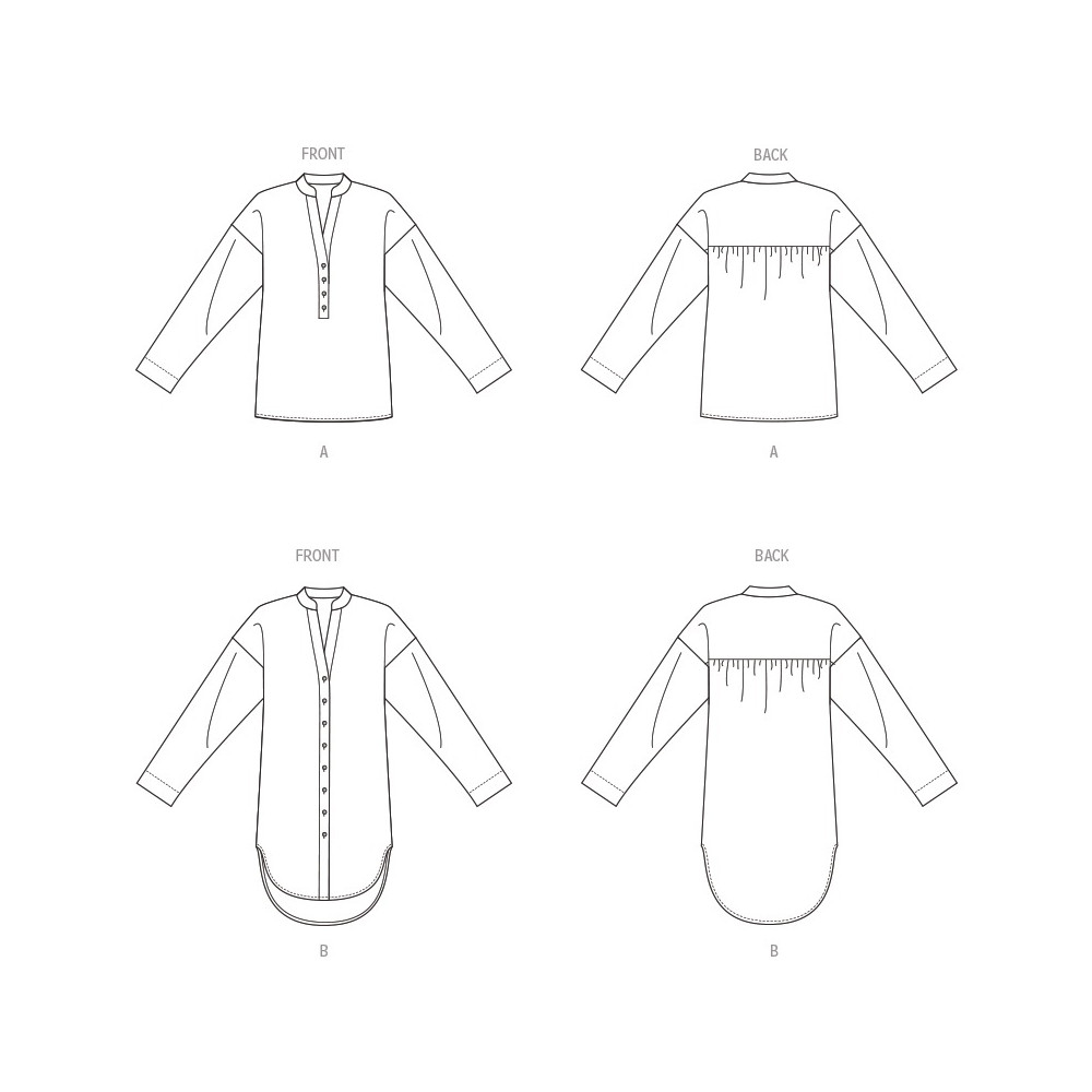Střih Butterick na volnou košili / tuniku se sesazenými rameny, širokými rukávy a V-výstřihem