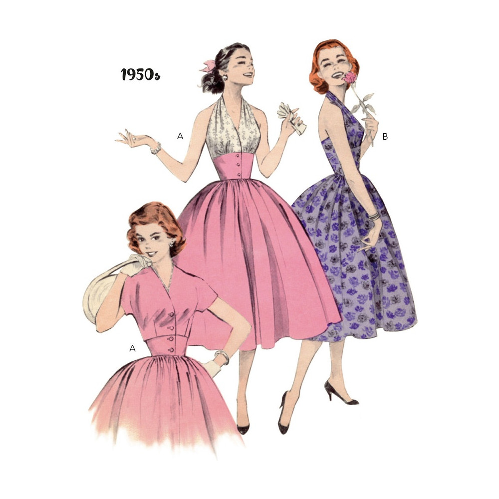 Střih Butterick na retro košilové šaty (z roku 1952) se širokou sukní