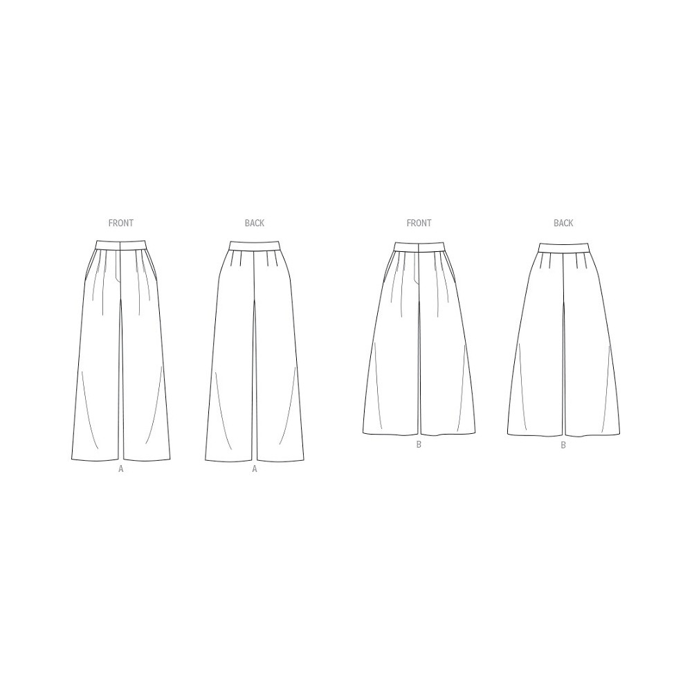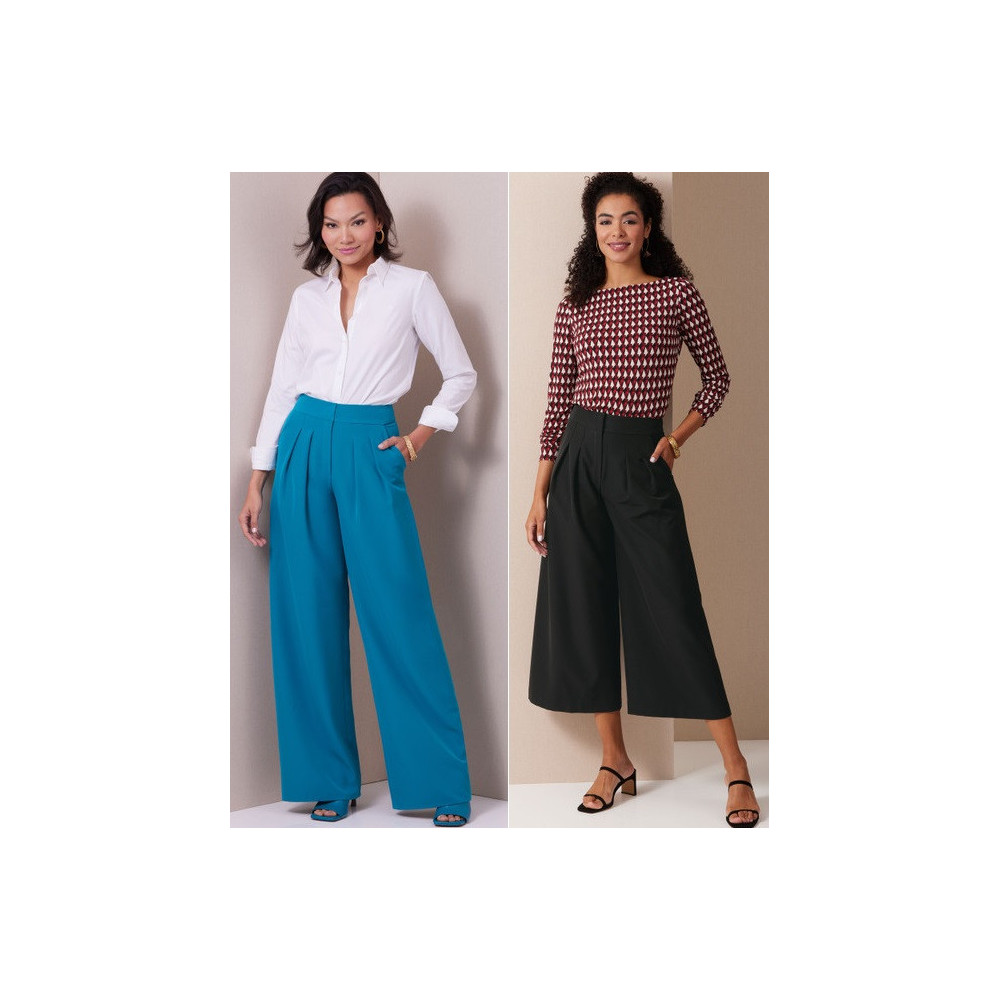 Střih Butterick na kalhoty se širokými nohavicemi se sklady a tvarujícími záševky