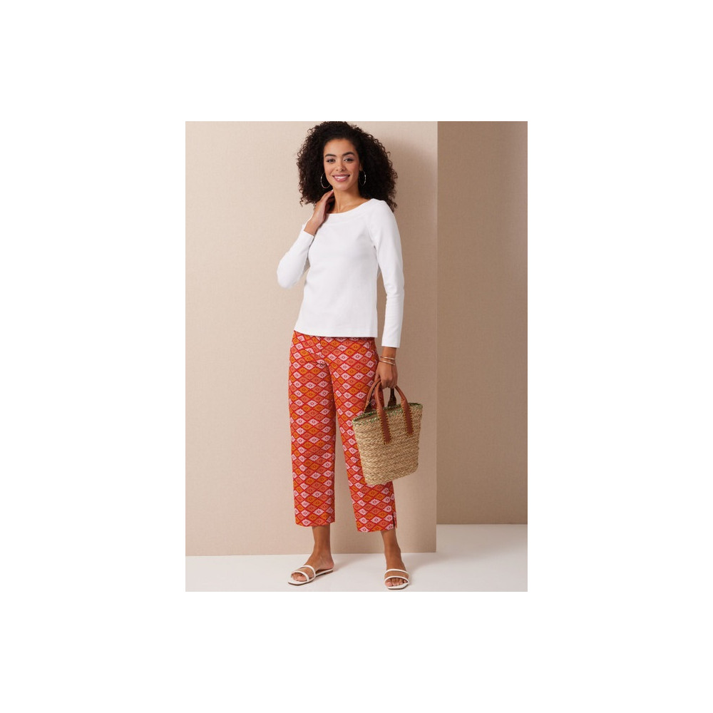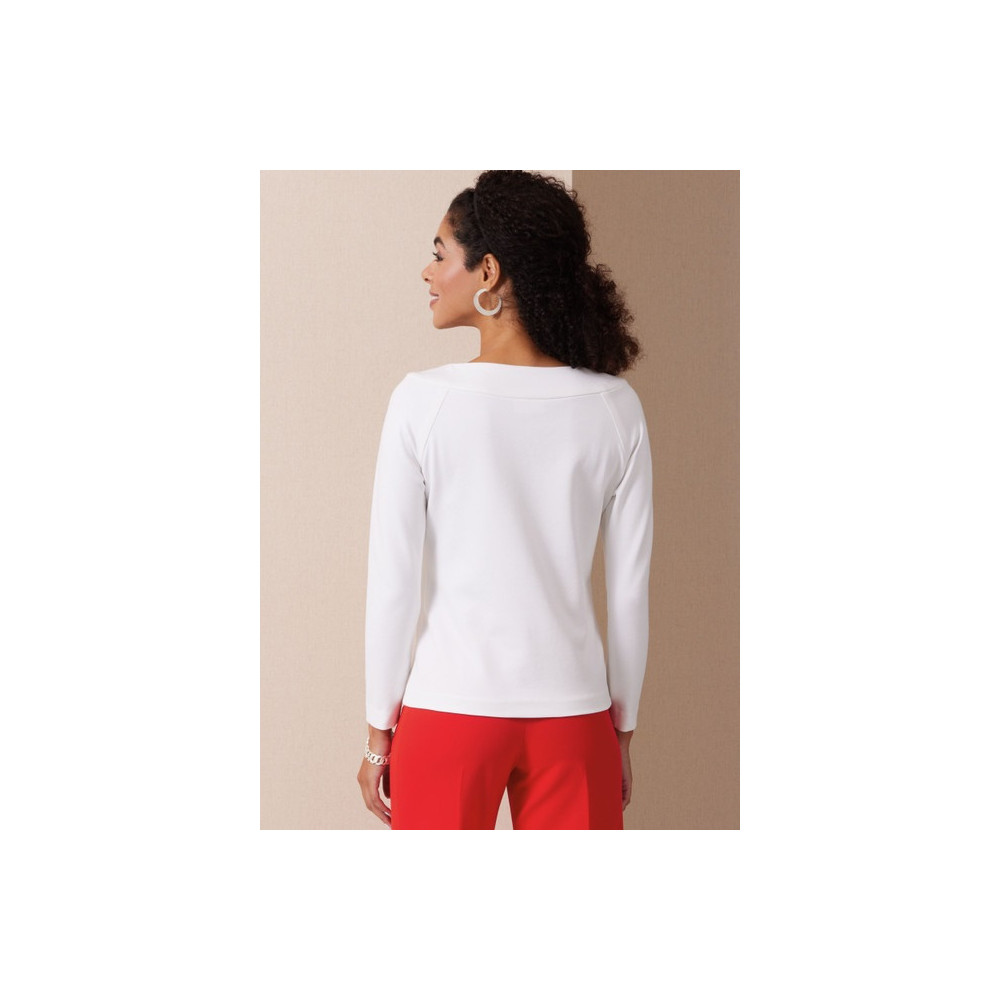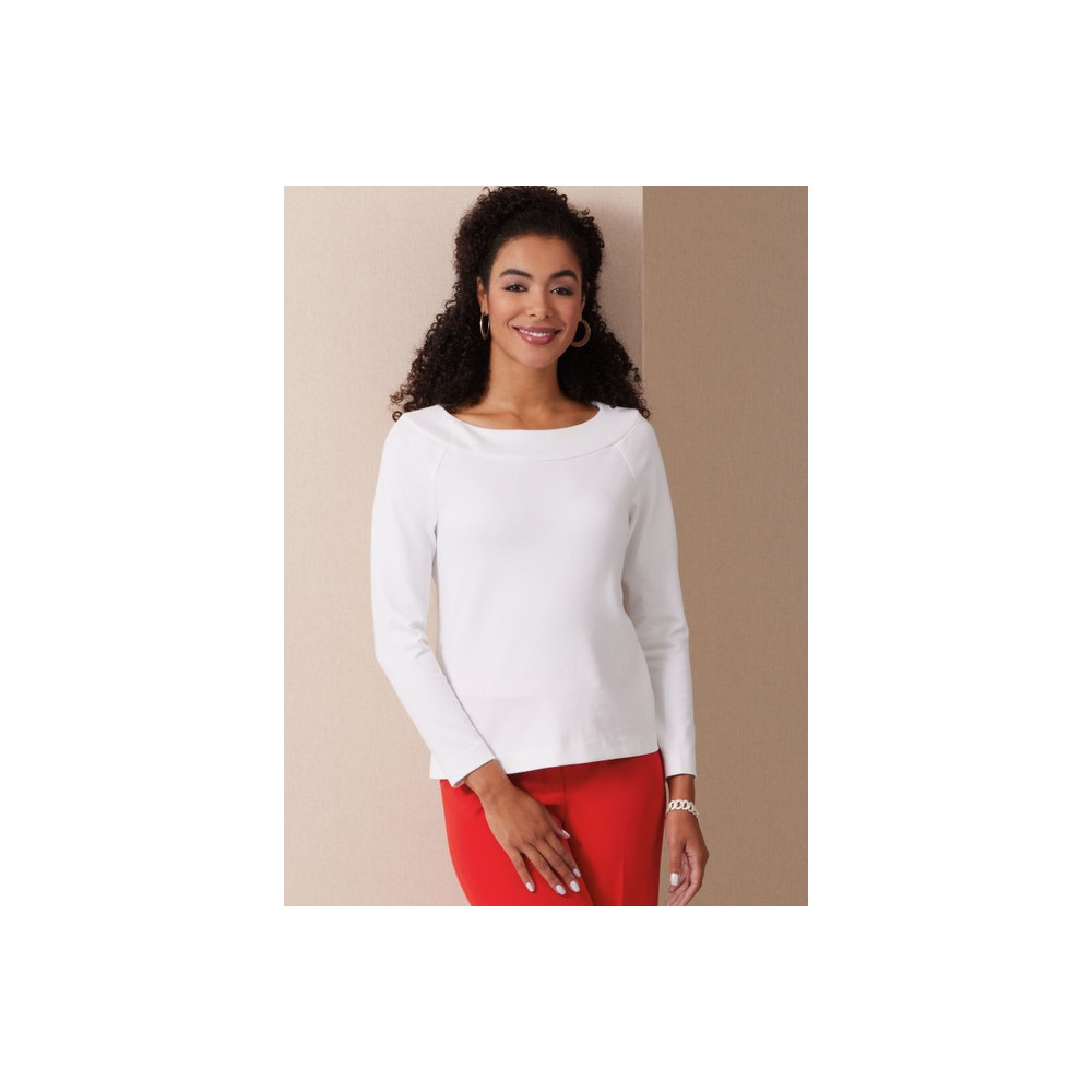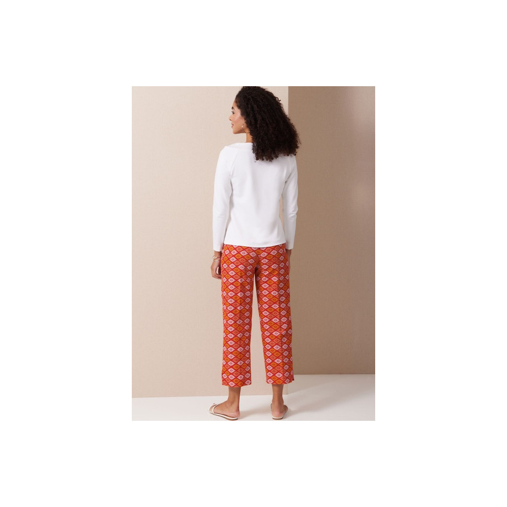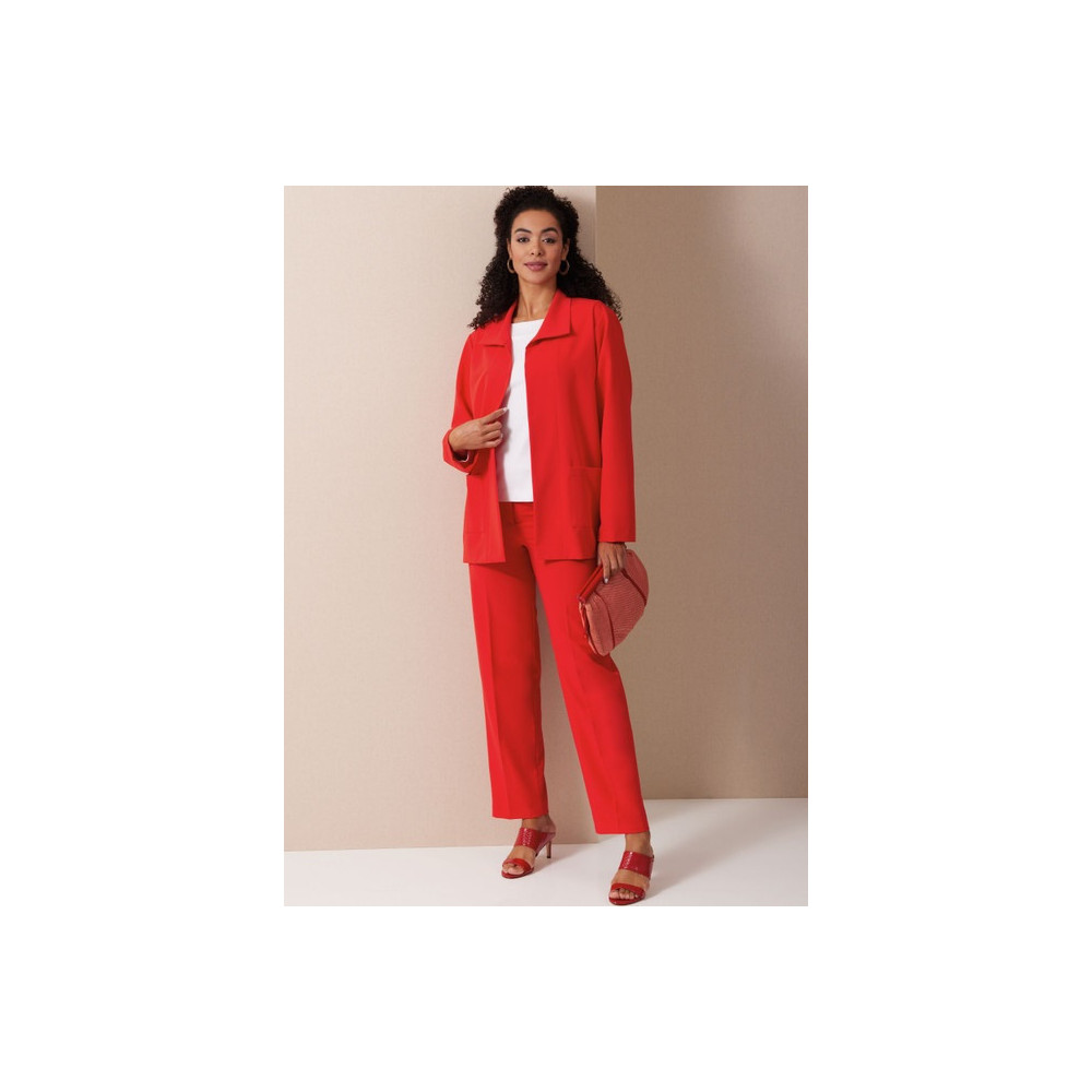 Střih Butterick na rovné šaty a tričko s raglánovými rukávy, sako s našitými kapsami a kalhoty s rovnými nohavicemi s puky a tvarujícími záševky