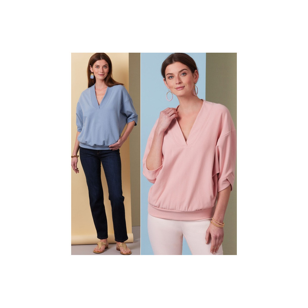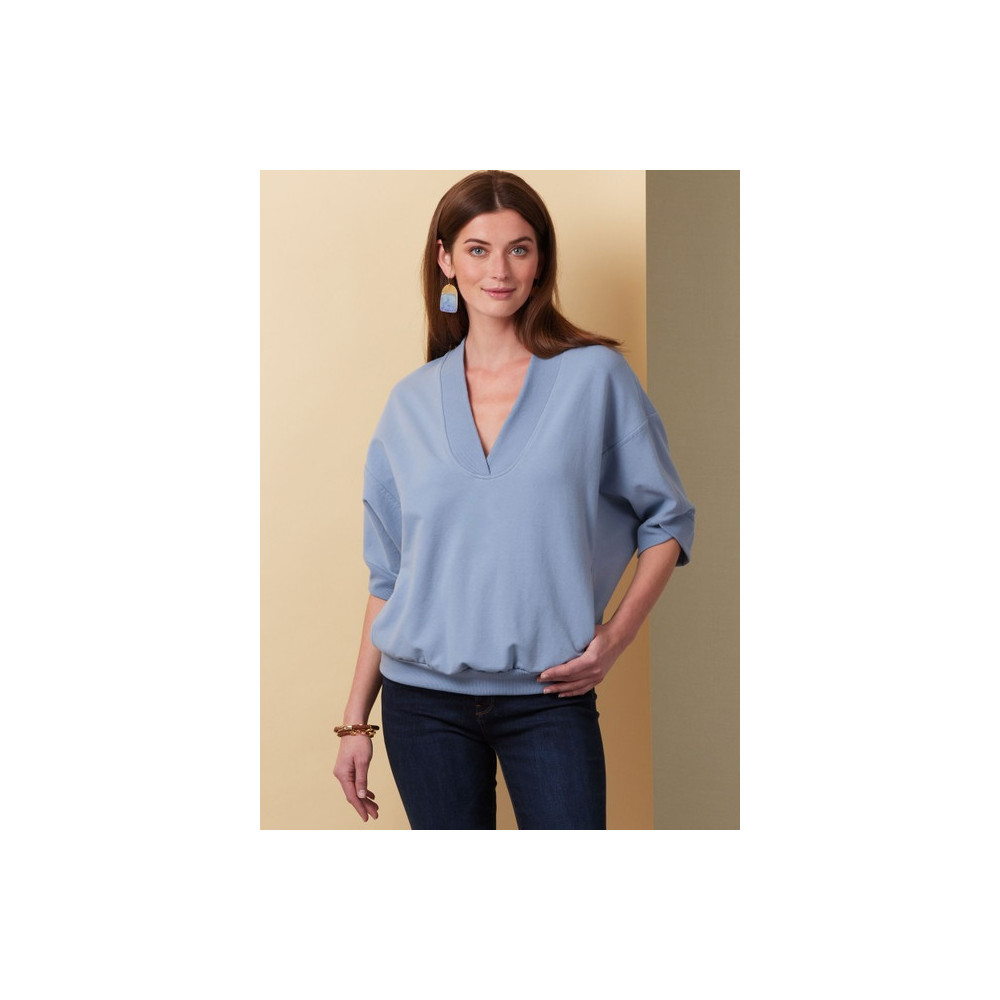 Střih Butterick na volný top / mikinu s variantami rukávů a kapsami ve švech
