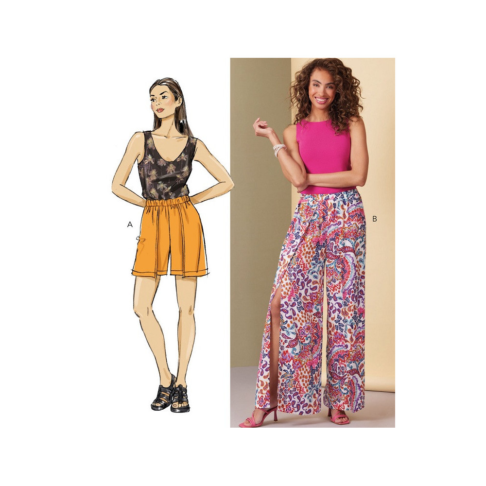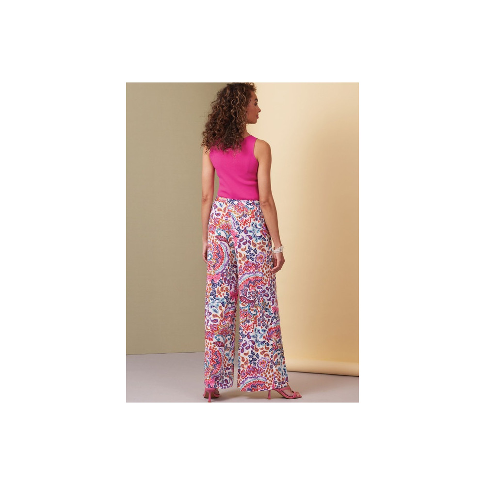 Střih Butterick na kalhoty s gumou v pase a zavinovacím efektem se skrytými bočními rozparky