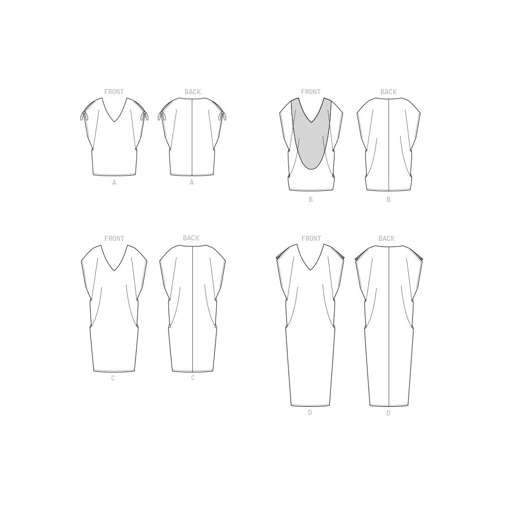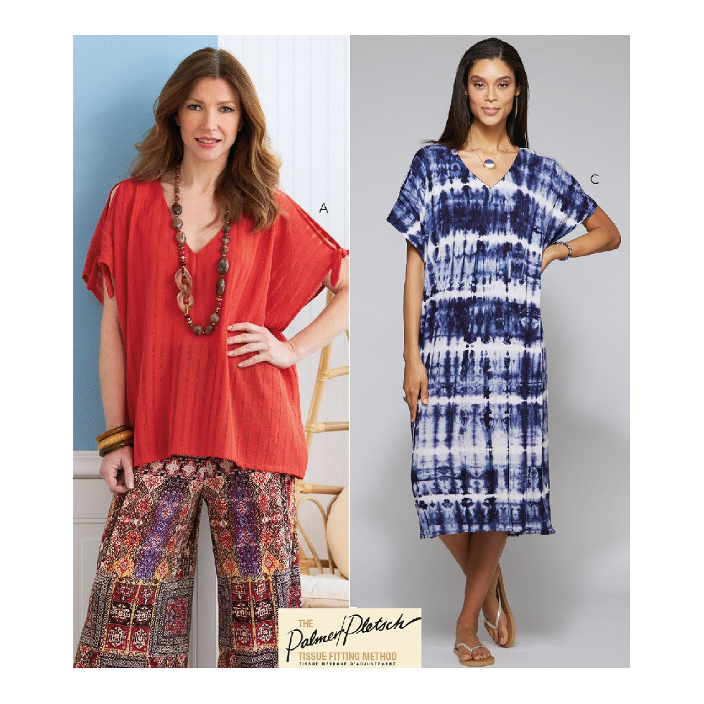 Střih Butterick na volnou tuniku a šaty s V-výstřihem a variantami rukávů a délek