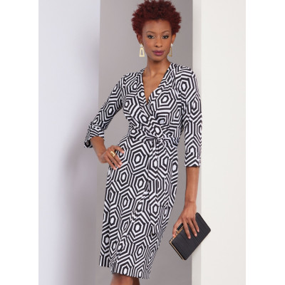 Střih Vogue na zavinovací šaty s límečkem a variantami rukávů a sukně