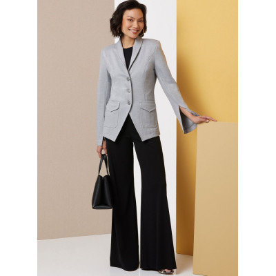 Střih Butterick na sako se šálovým límcem, dlouhými rukávy s rozparky, tvarovanou záložkou a...