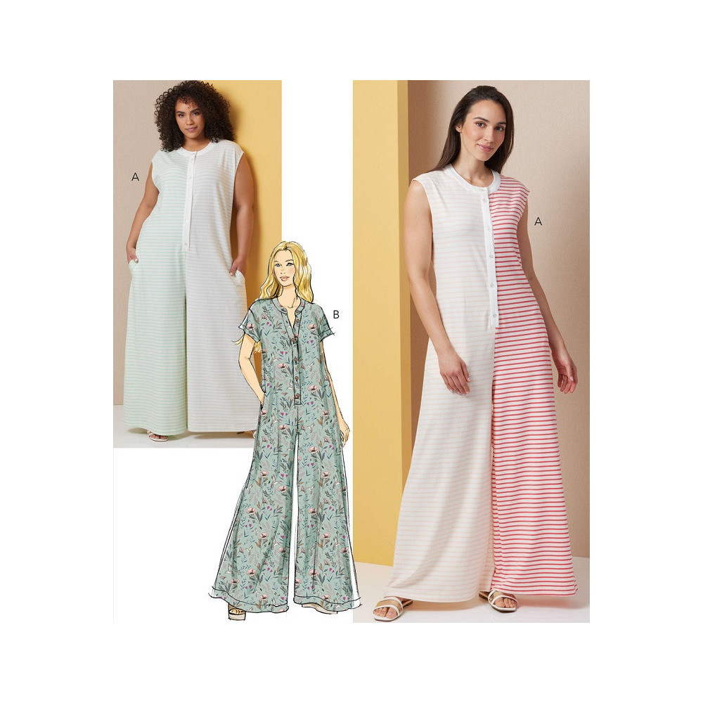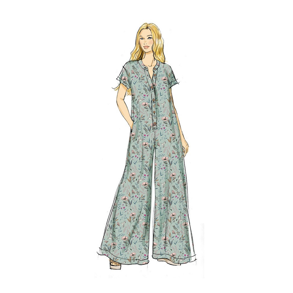 Střih Butterick na pohodlný overal se širokými nohavicemi s kapsami a předním zapínáním na knoflíky