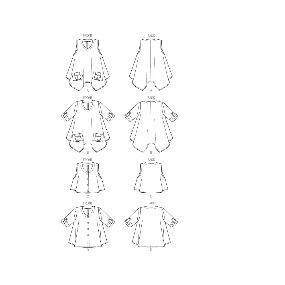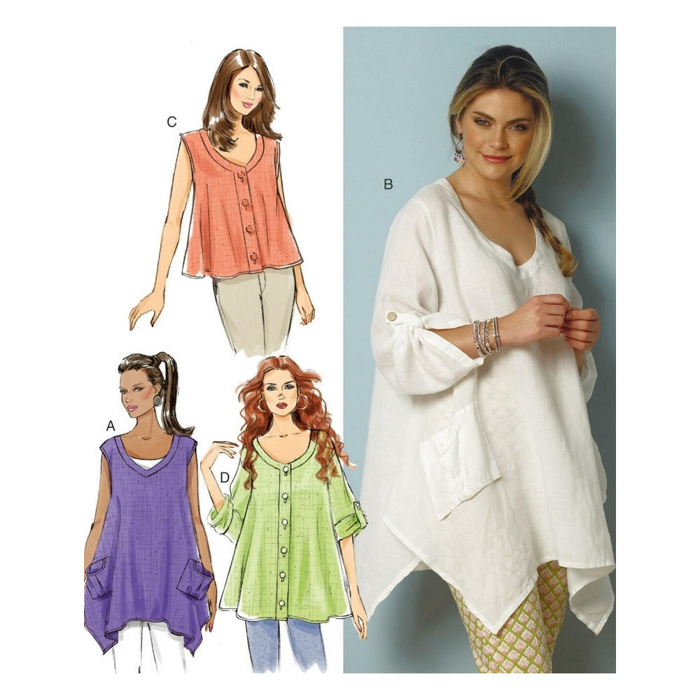 Jednoduchý střih Butterick na volnou halenku / tuniku s kapsami (4 varianty)
