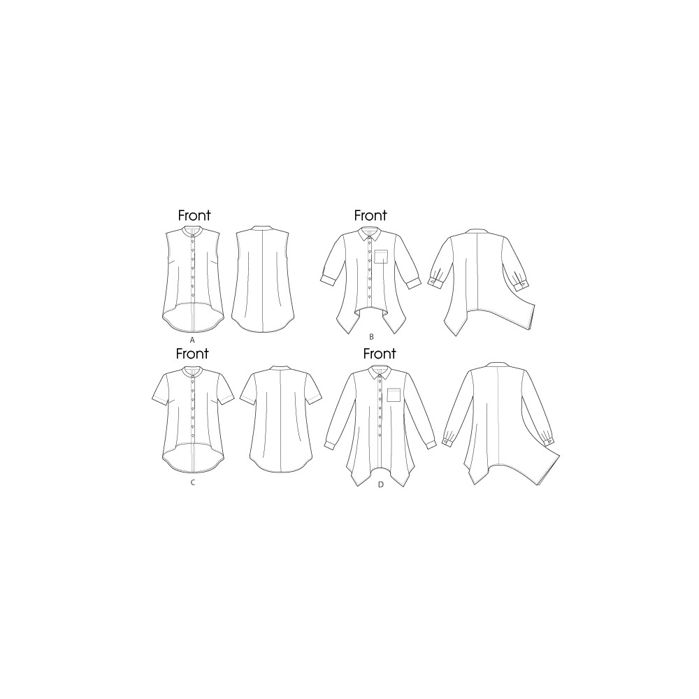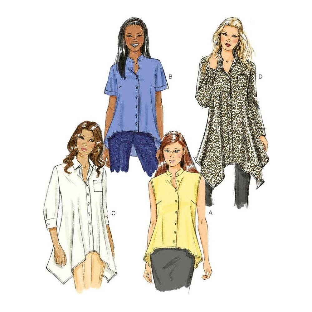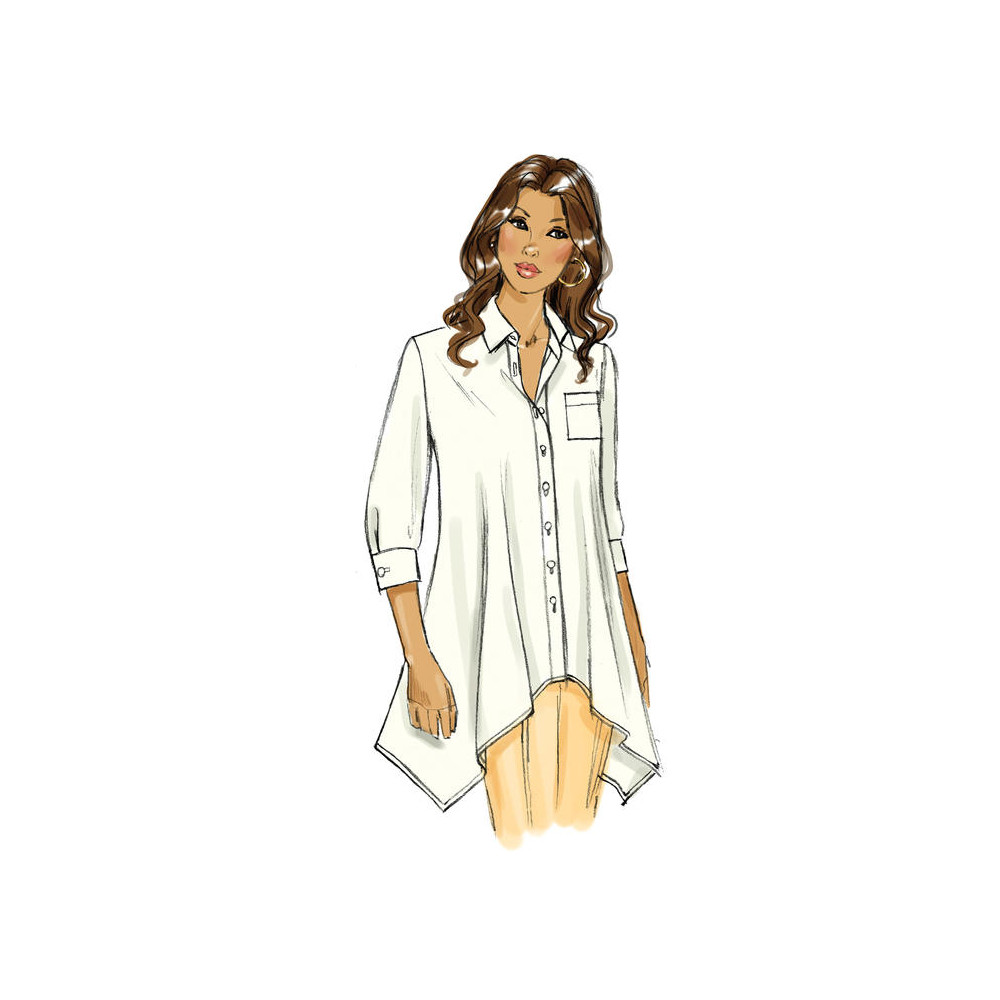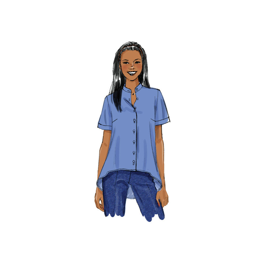 Střih Butterick na volnou propínací košili s delším zadním dílem nebo cípatým lemem