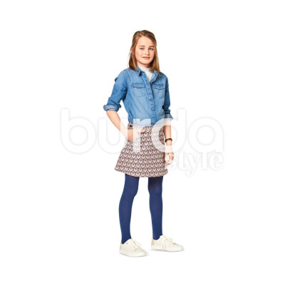 Střih Burda na džínovou sukni s pružným zadním pasem a džínovou sukni s laclem.