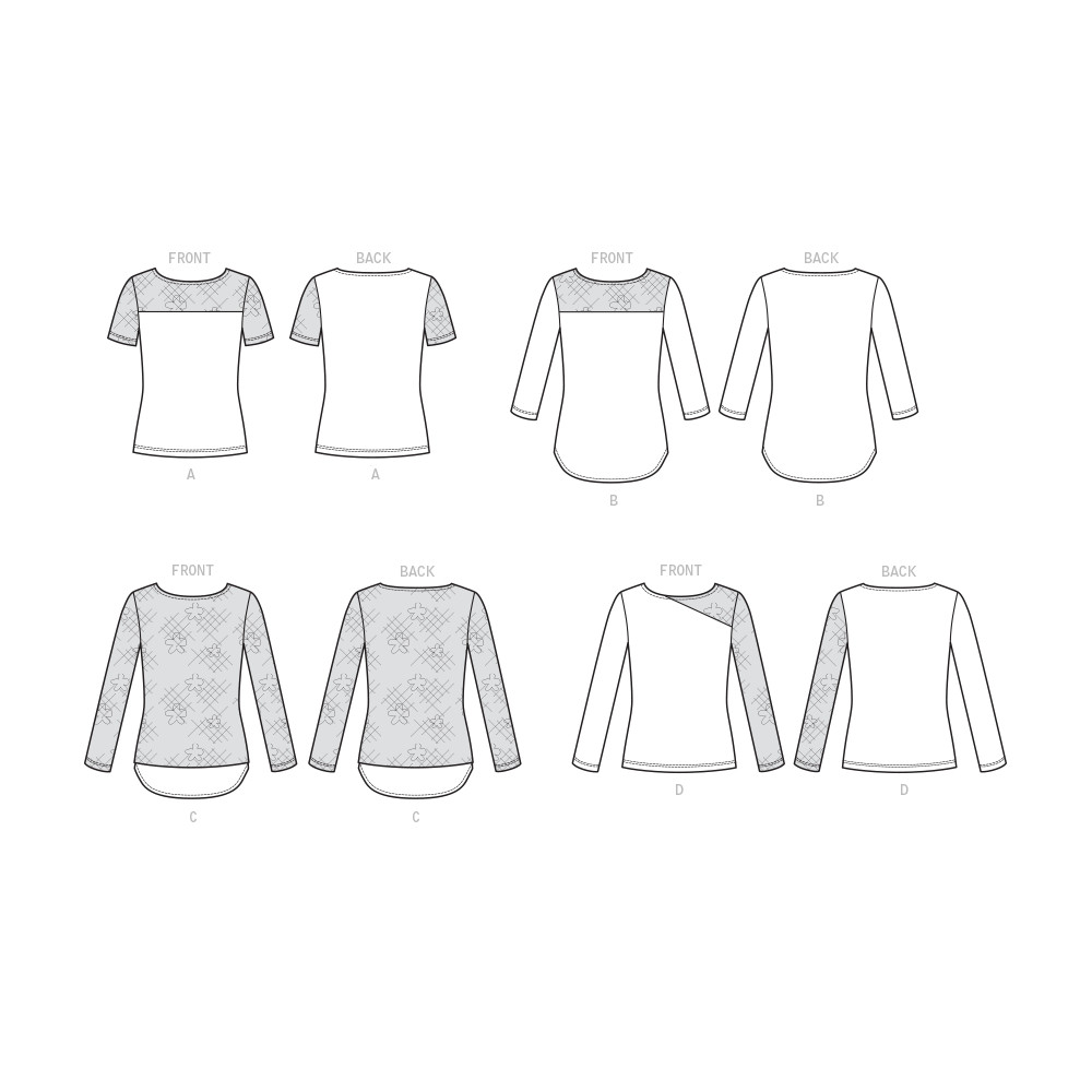 Střih Butterick na tričko s lodičkovým výstřihem a rukávy (4 varianty)