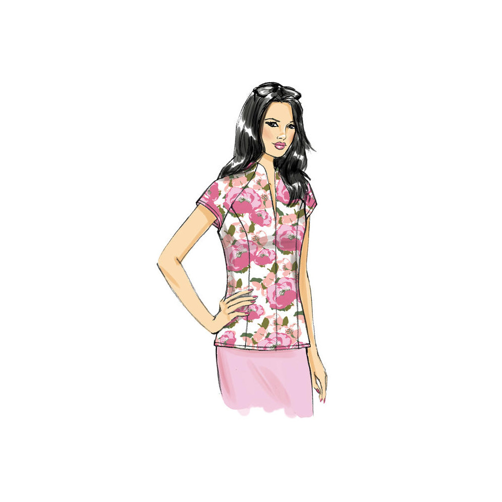 Střih Butterick na projmutou halenku s princess švy a stojáčkem s průstřihem