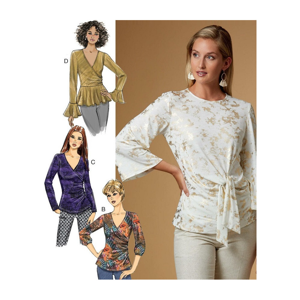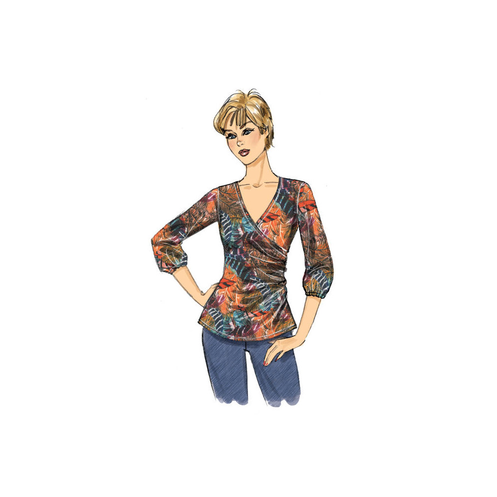 Střih Butterick na zavinovací tričko s řasením na jednom boku a na tričko s twistem