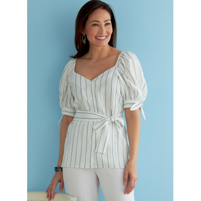 Jednoduchý střih Butterick na halenku s lodičkovým výstřihem a variantami rukávů