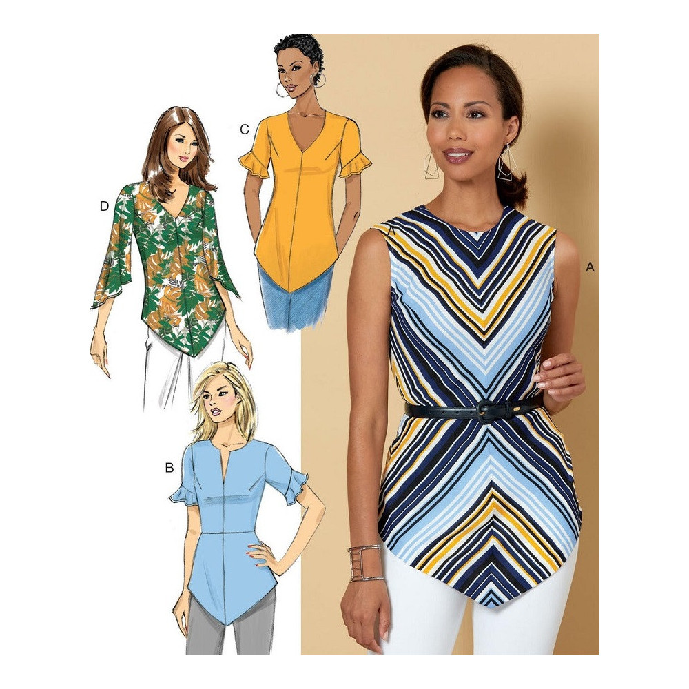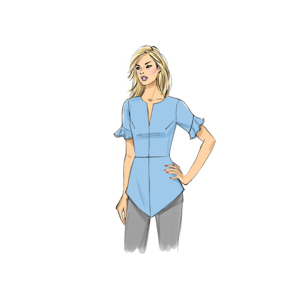 Střih Butterick na top peplum s V-výstřihem a variantami rukávů