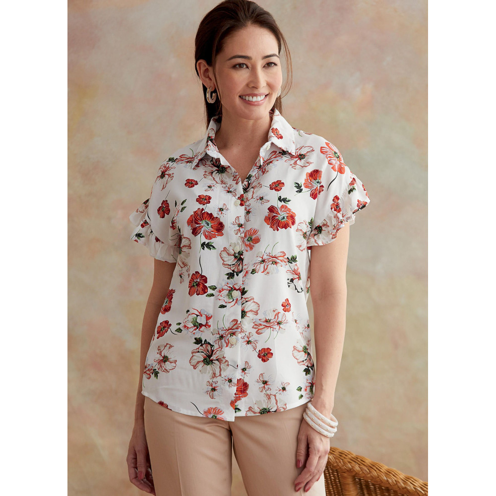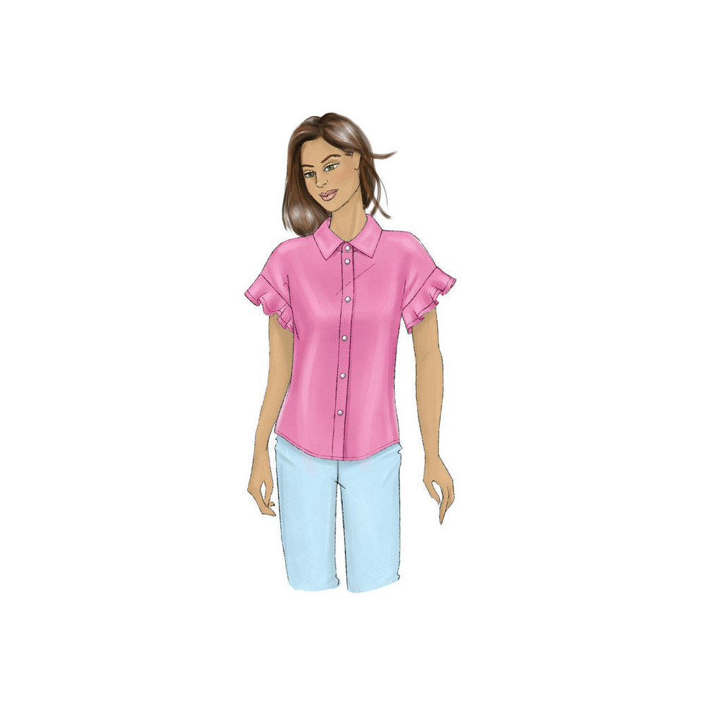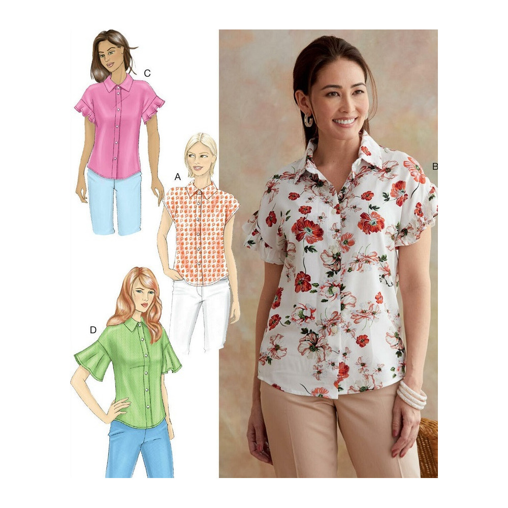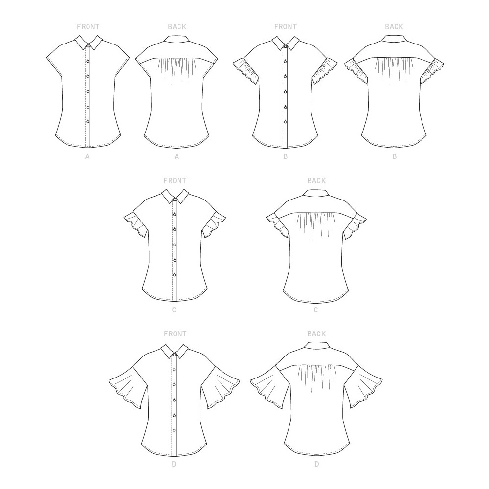 Jednoduchý střih Butterick na propínací halenku s variantami rukávů