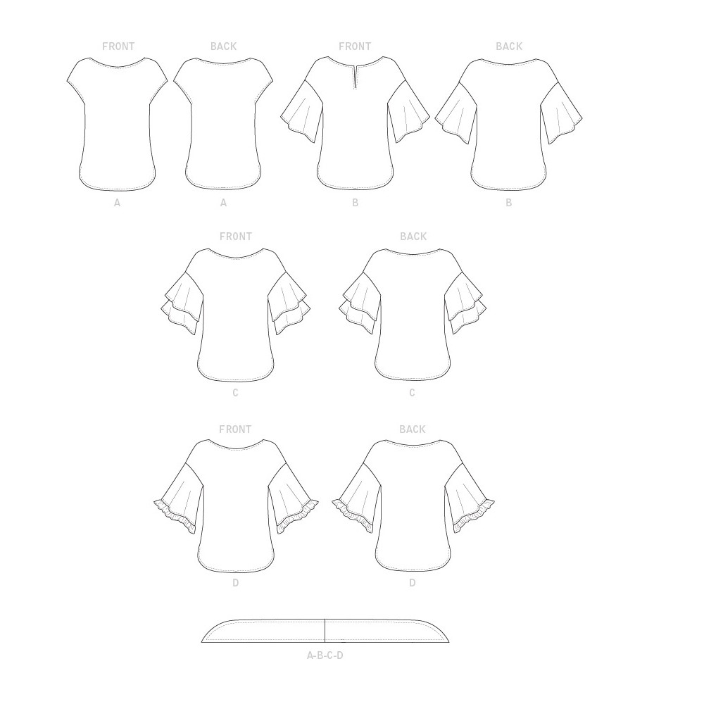 Jednoduchý střih Butterick na halenku s lodičkovým výstřihem a variantami rukávů