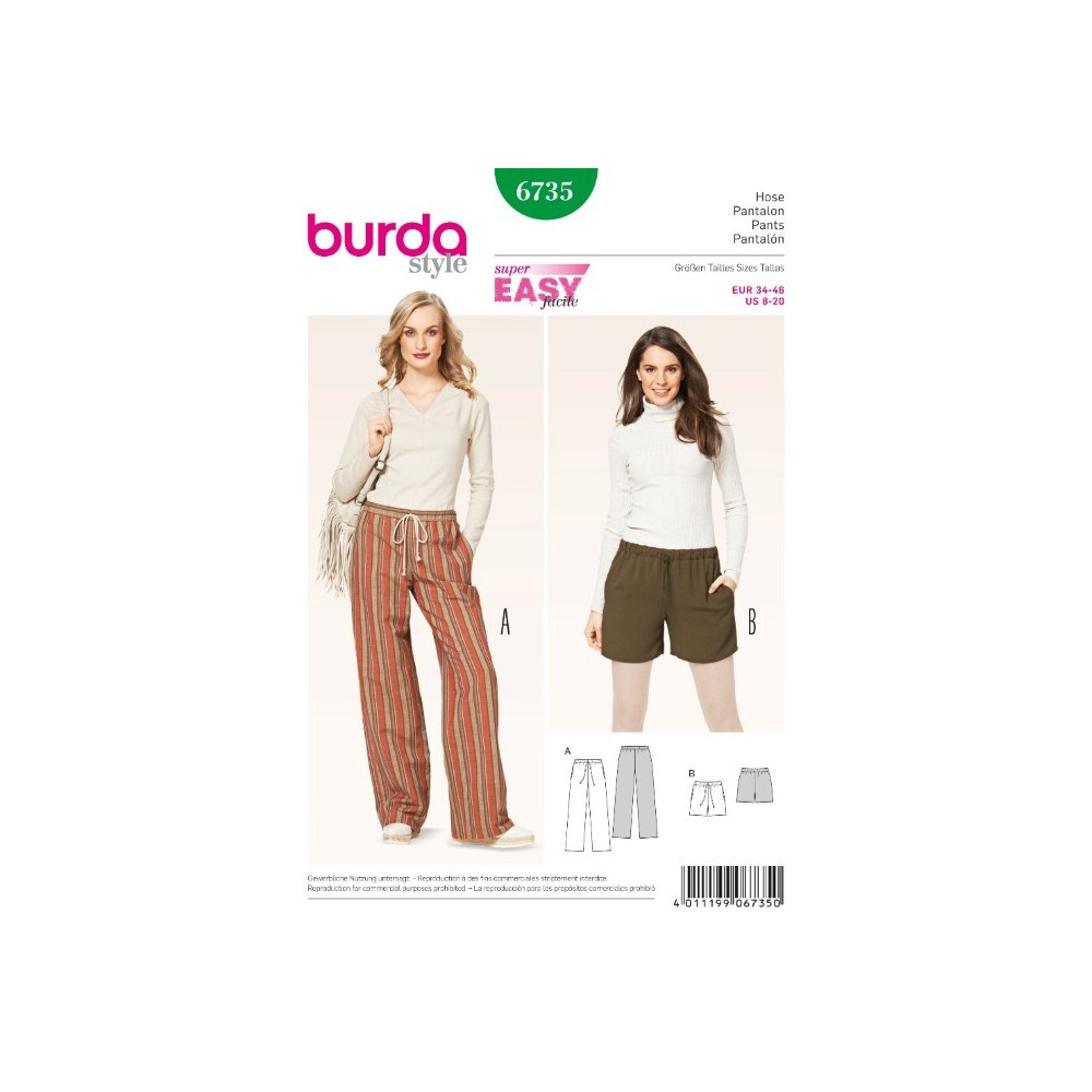 Střih Burda na pohodlné široké kalhoty a šortky s pasem do gumy a na šňůrku.