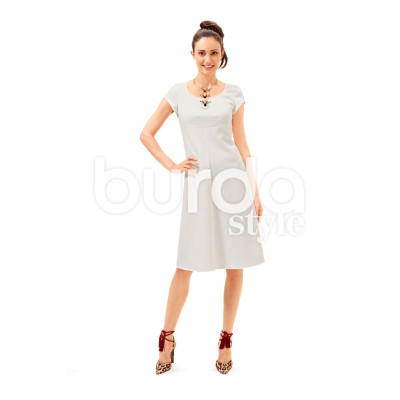 Střih Burda na áčkové šaty a halenku s kulatým výstřihem a vysokým pasem.