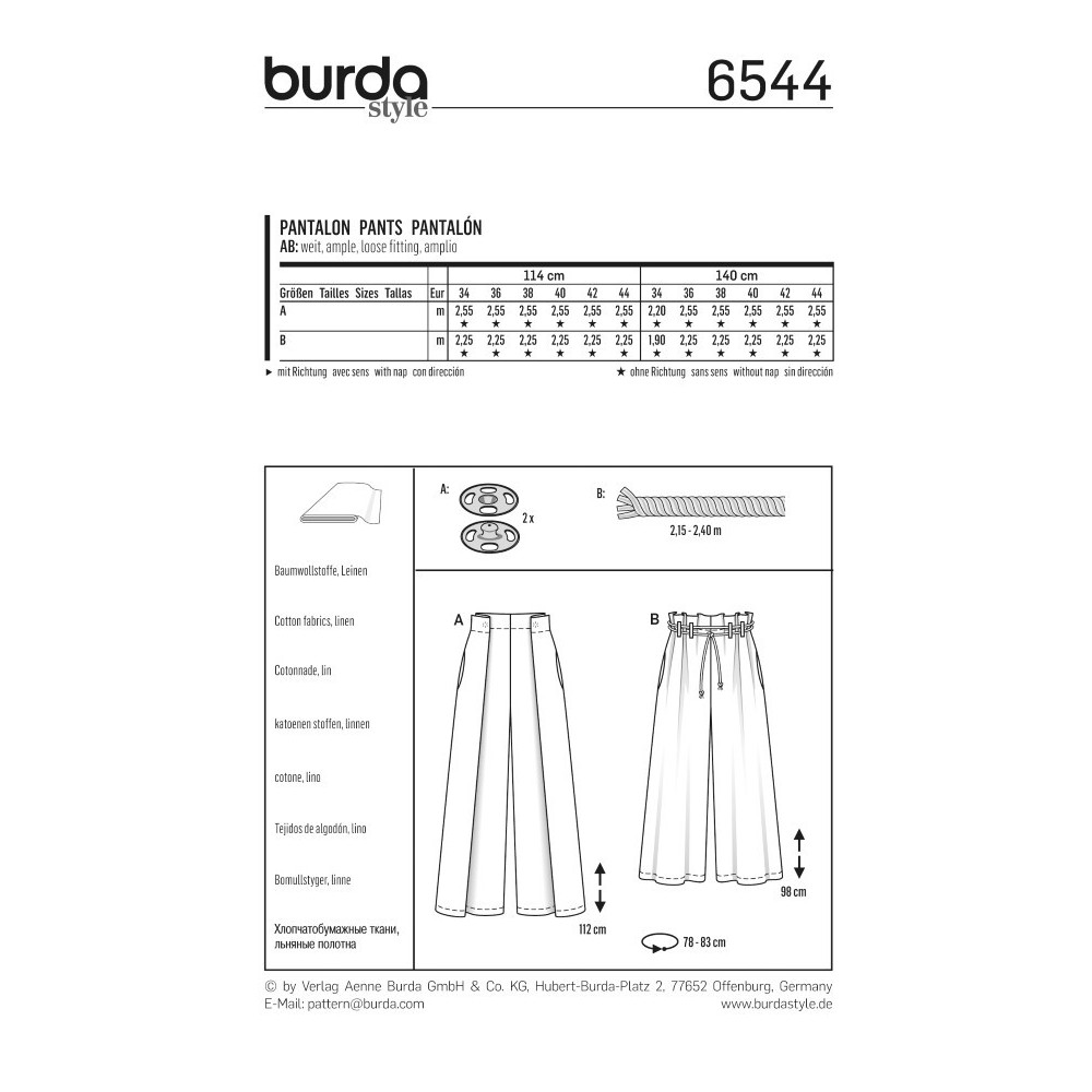 Více se dočtete v popisuStřih ve velikostech EUR 34-44, úroveň obtížnosti šití: 1 (velmi lehká), doporučené látky: bavlna, len