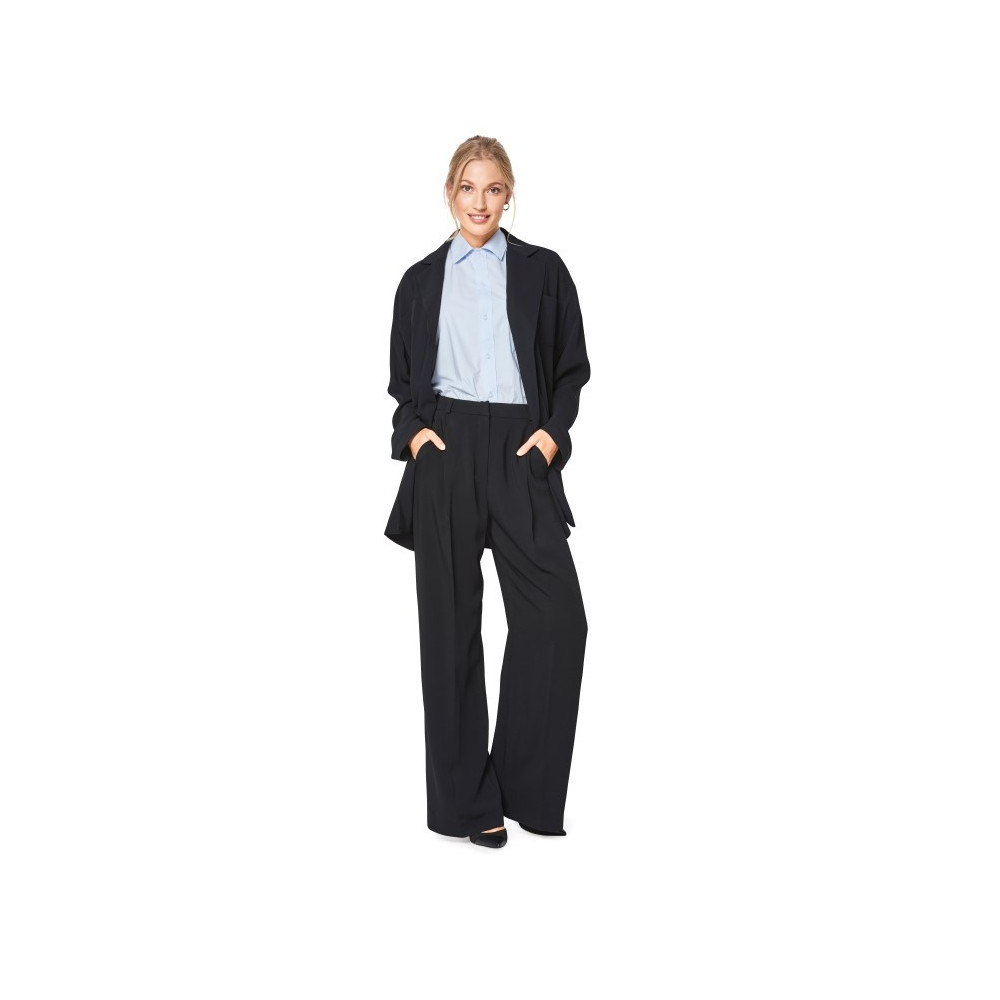 Střih Butterick na sako na jeden knoflík, kalhoty se širokými nohavicemi s puky a zvonovou sukni...