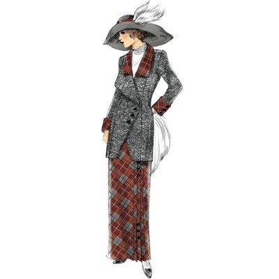 Střih Butterick na retro kabát (z roku 1912) se šálovým límcem a sukni s vysokým pasem