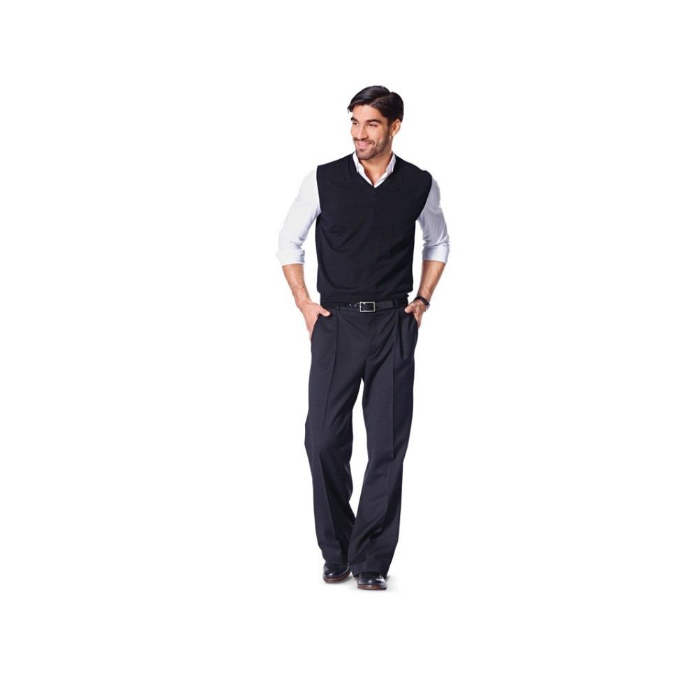 Střih Burda na pánské kalhoty s puky s cigaretovými nebo rovnými nohavicemi.