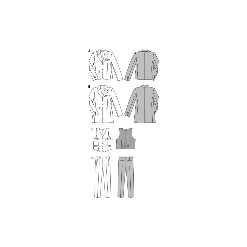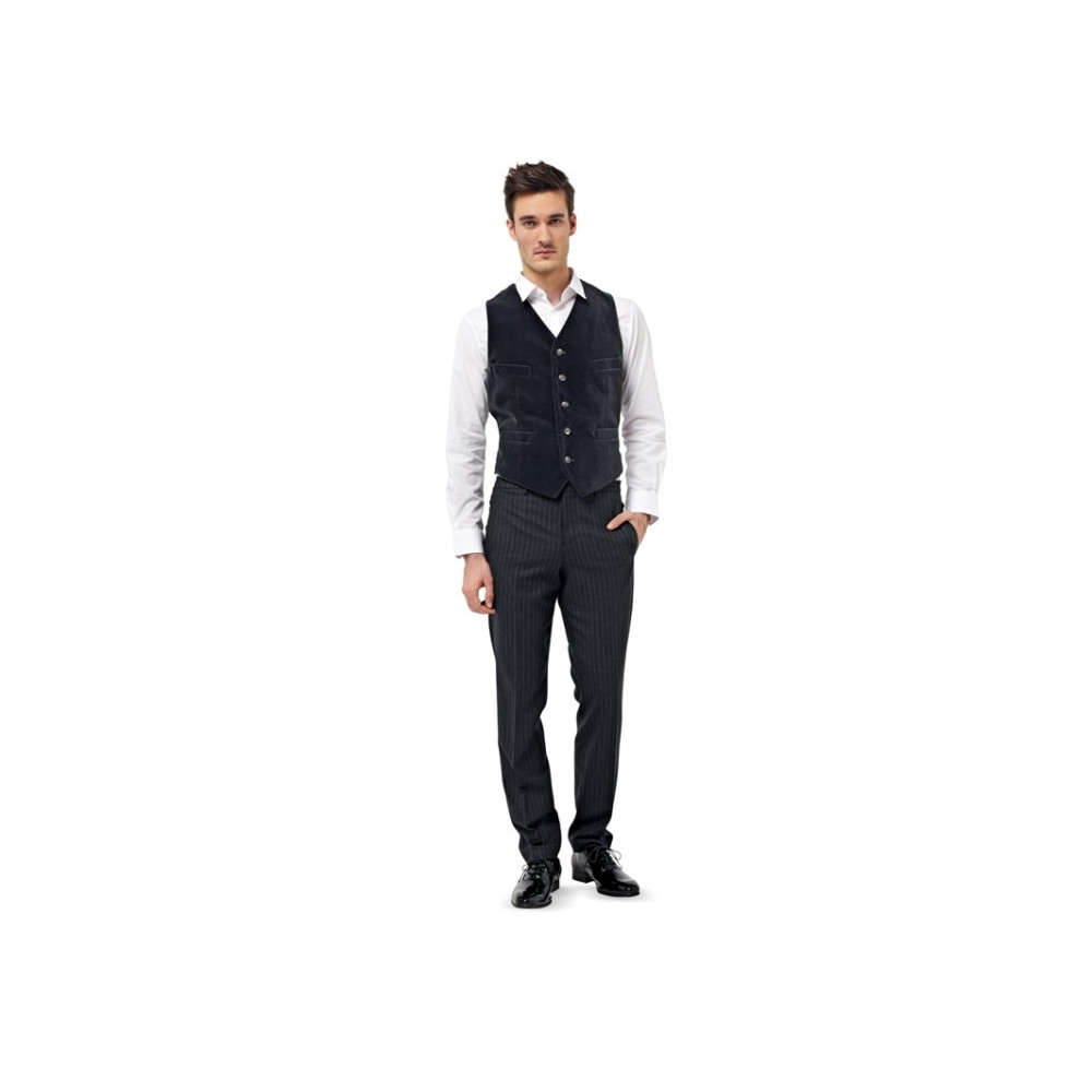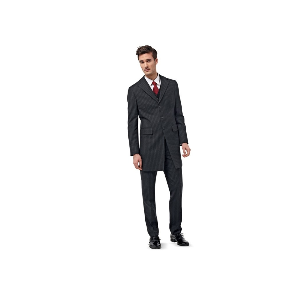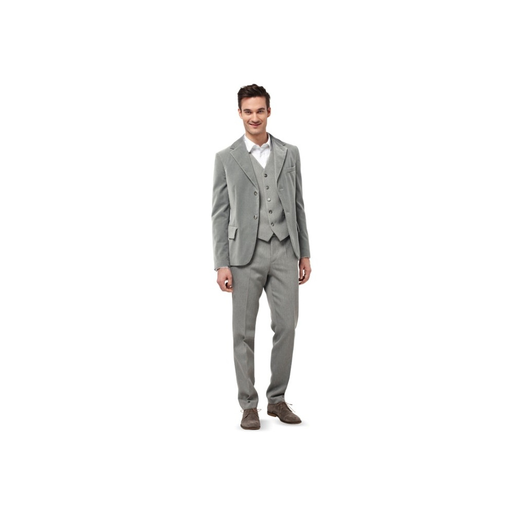 Střih Burda na pánský oblek - sako ve dvou délkách, vestu a kalhoty se zažehlenými puky.