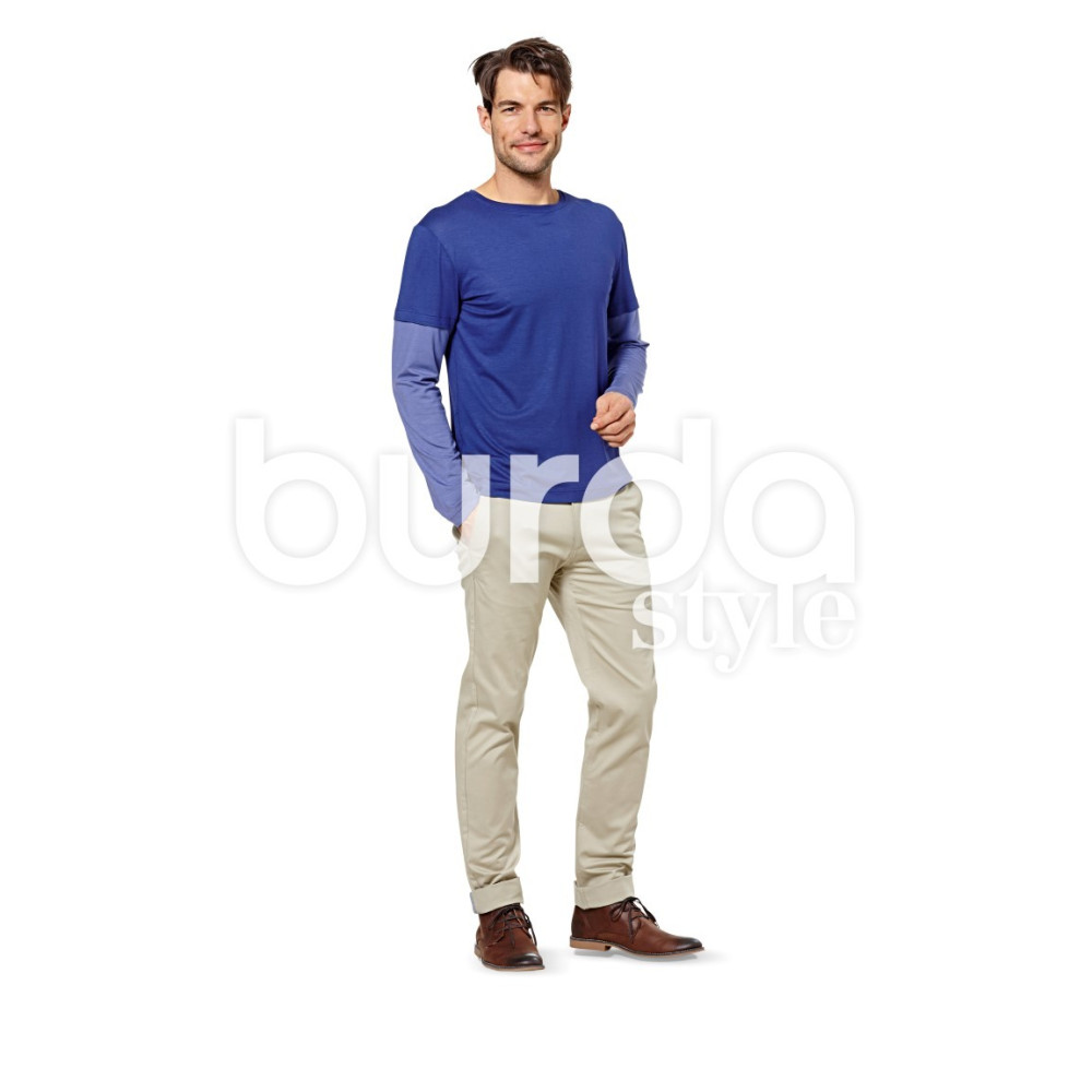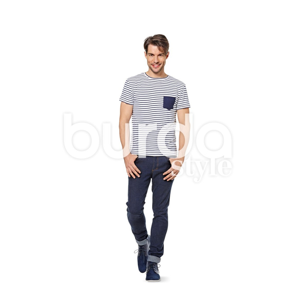 Střih Burda na jednoduché žerzejové tričko pro dámy a pány v různých variantách.