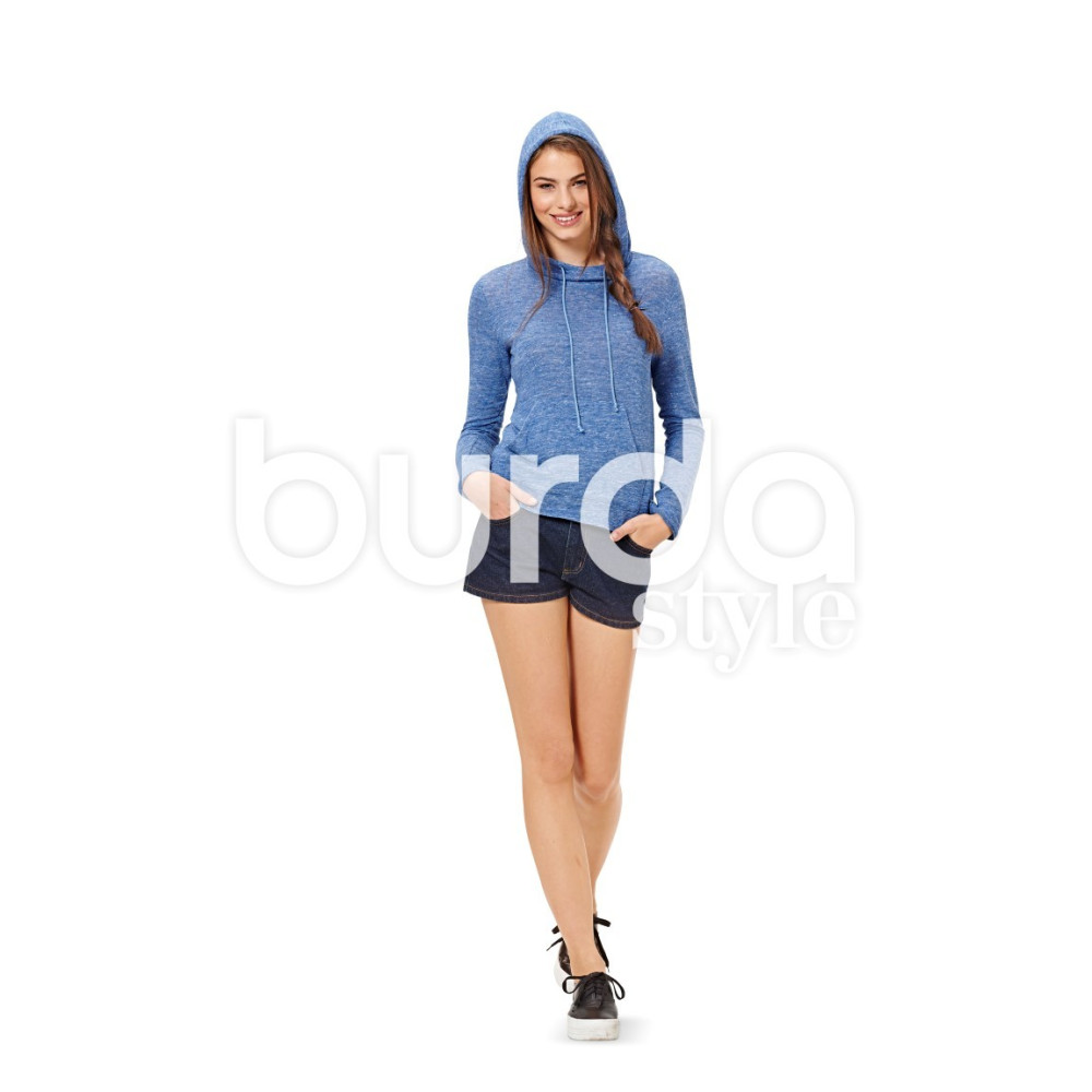Střih Burda na šortky a kalhoty s kapsami s pružným zadním pasem.