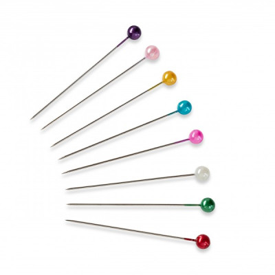 Odolné špendlíky s perličkovou hlavičkou v různých barvách v plastové dóze