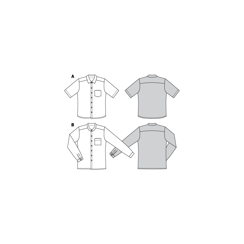 Střih Burda na pánskou košili s krátkým nebo dlouhým rukávem, límečkem nebo stojáčkem.