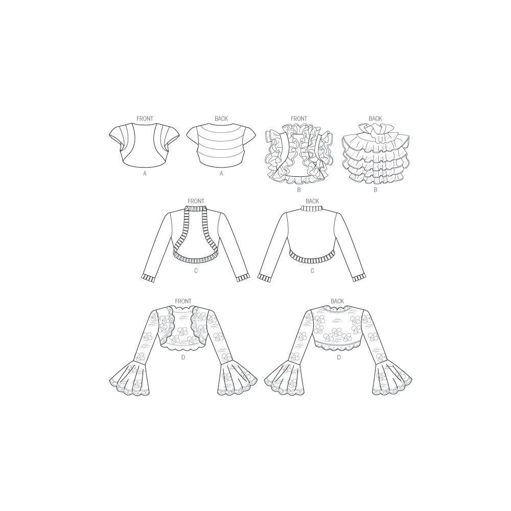 Střih Vogue na bolerko ve 4 variantách, od jednoduchého až po pompézní volánové