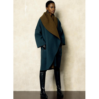 Střih Vogue na volný zavinovací kabát - přední díly přesahují do maxi límce
