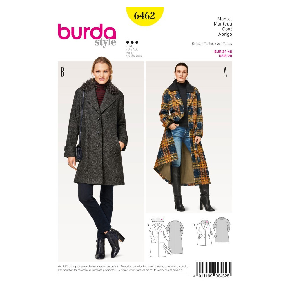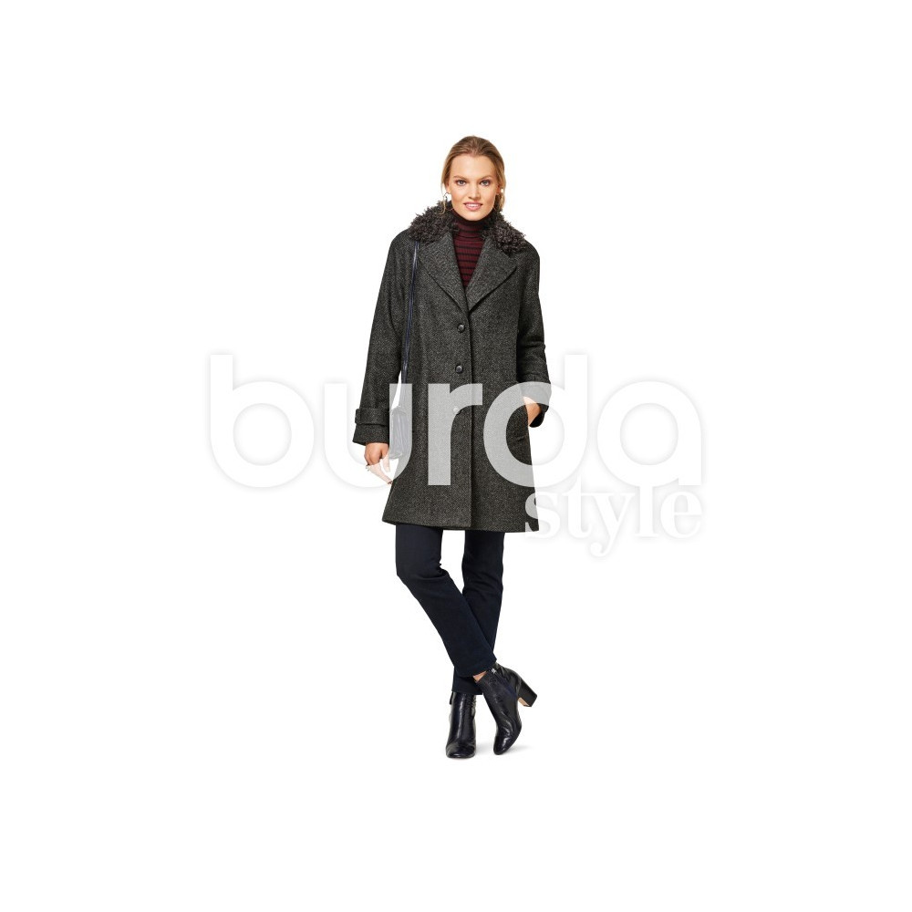 Střih Burda na volnější áčkový kabát ve dvou délkách s páskem a velkými kapsami.