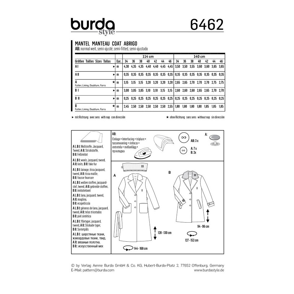 Více se dočtete v popisuStřih ve velikostech EUR 34-46, úroveň obtížnosti šití: 3 (střední), doporučené látky: vlněné látky, žakár, tvíd