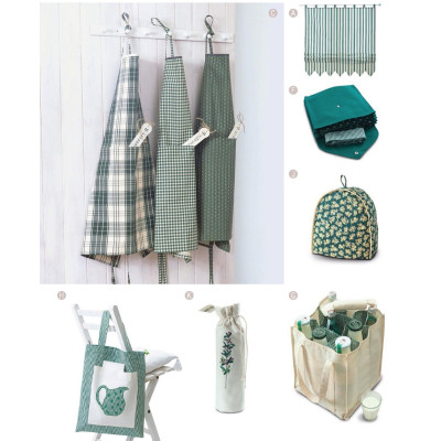 Střih Burda na kuchyňské doplňky: zástěra, chňapka, prostírání, taška, závěs, ...
