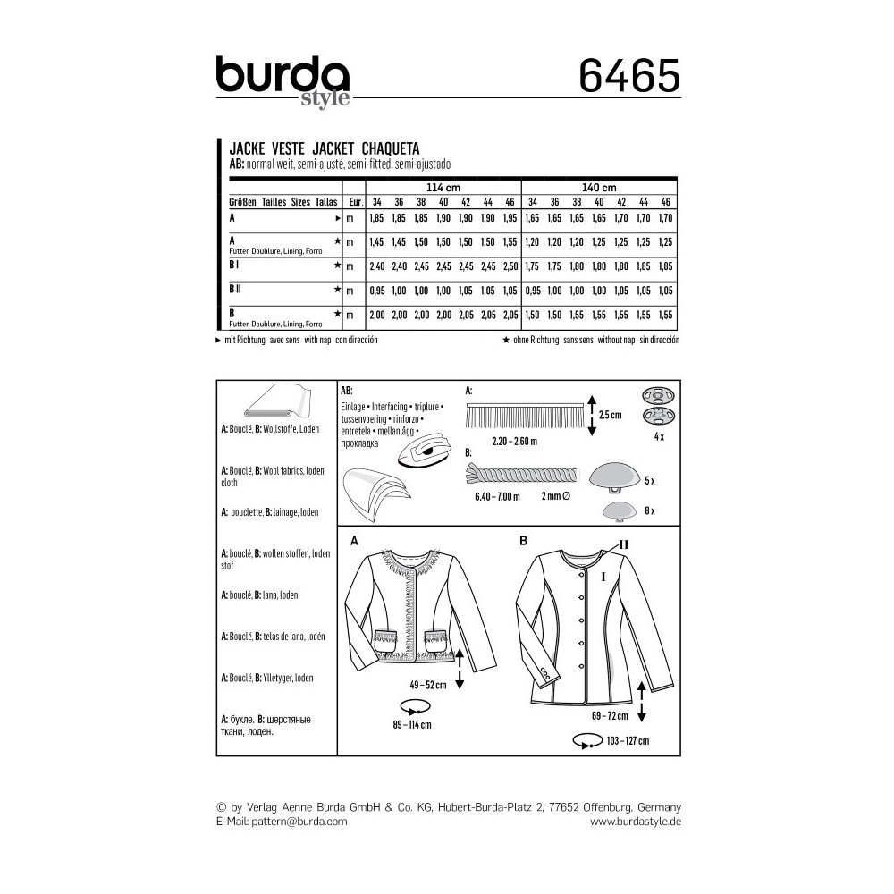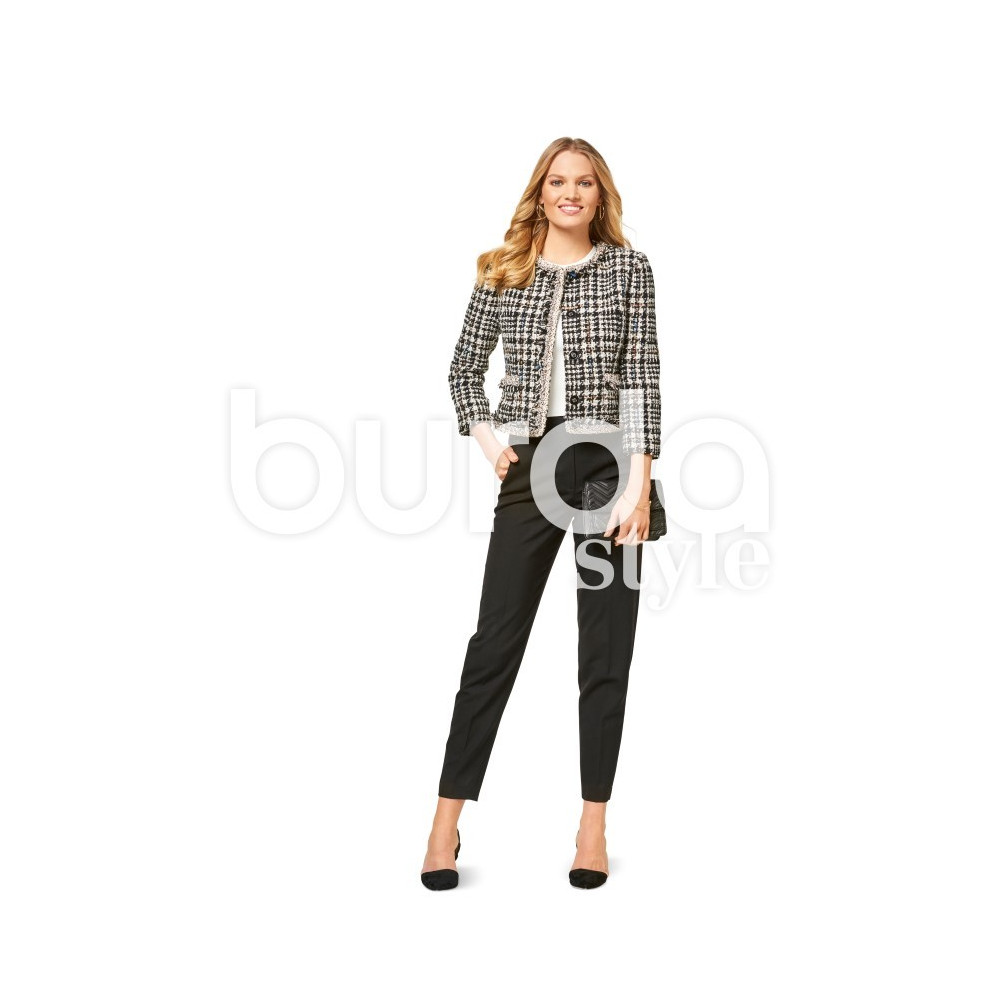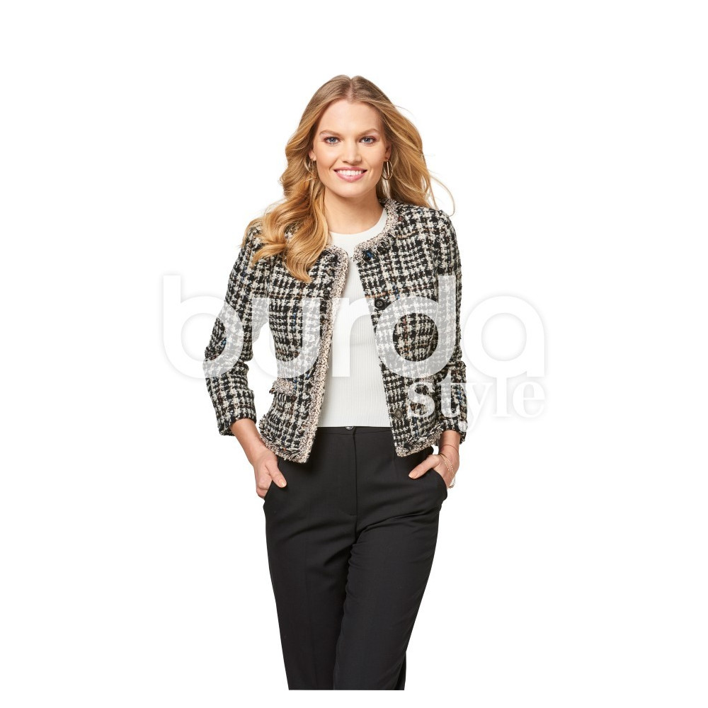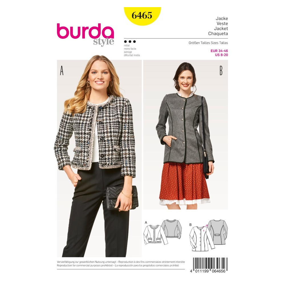 Střih Burda na krátký francouzský kabátek a delší krojové sako bez límce.